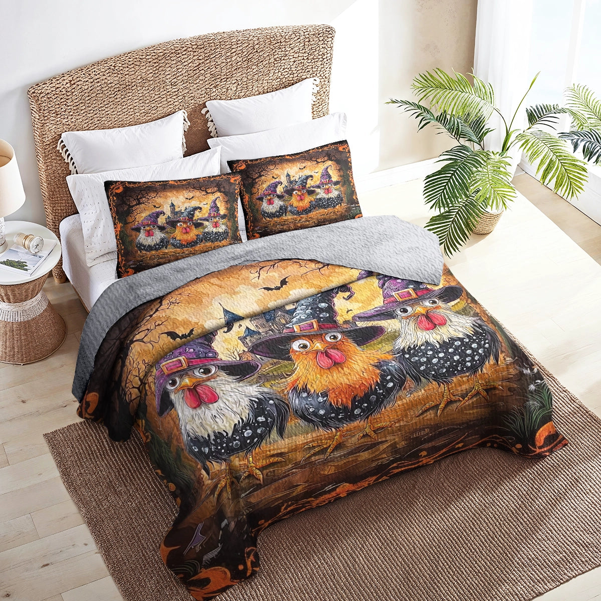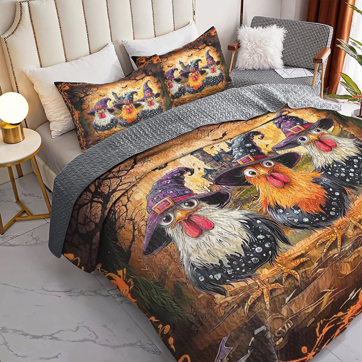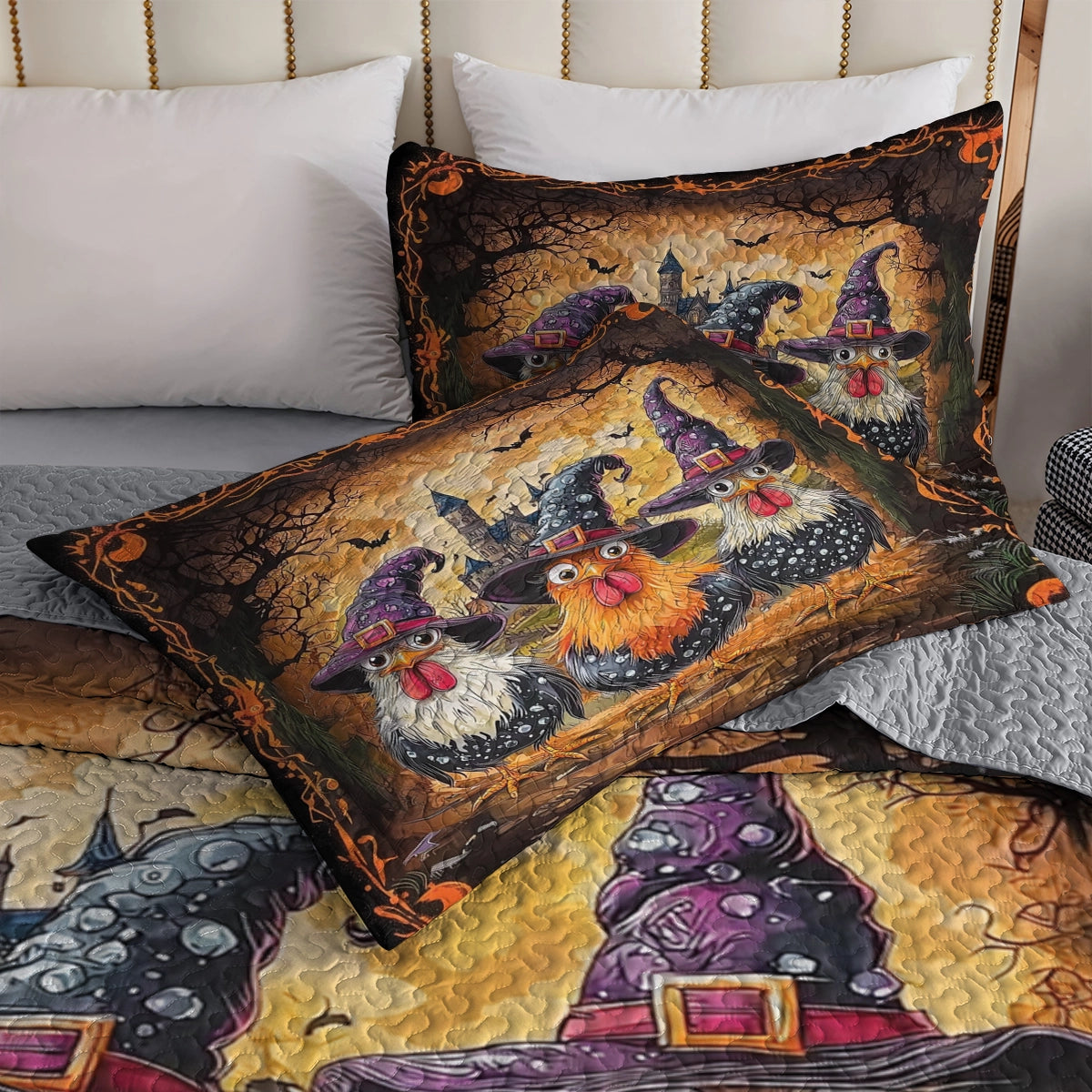 Shineful All Season Quilt 3-Piece Set - Chicken Spooky Hat Witch