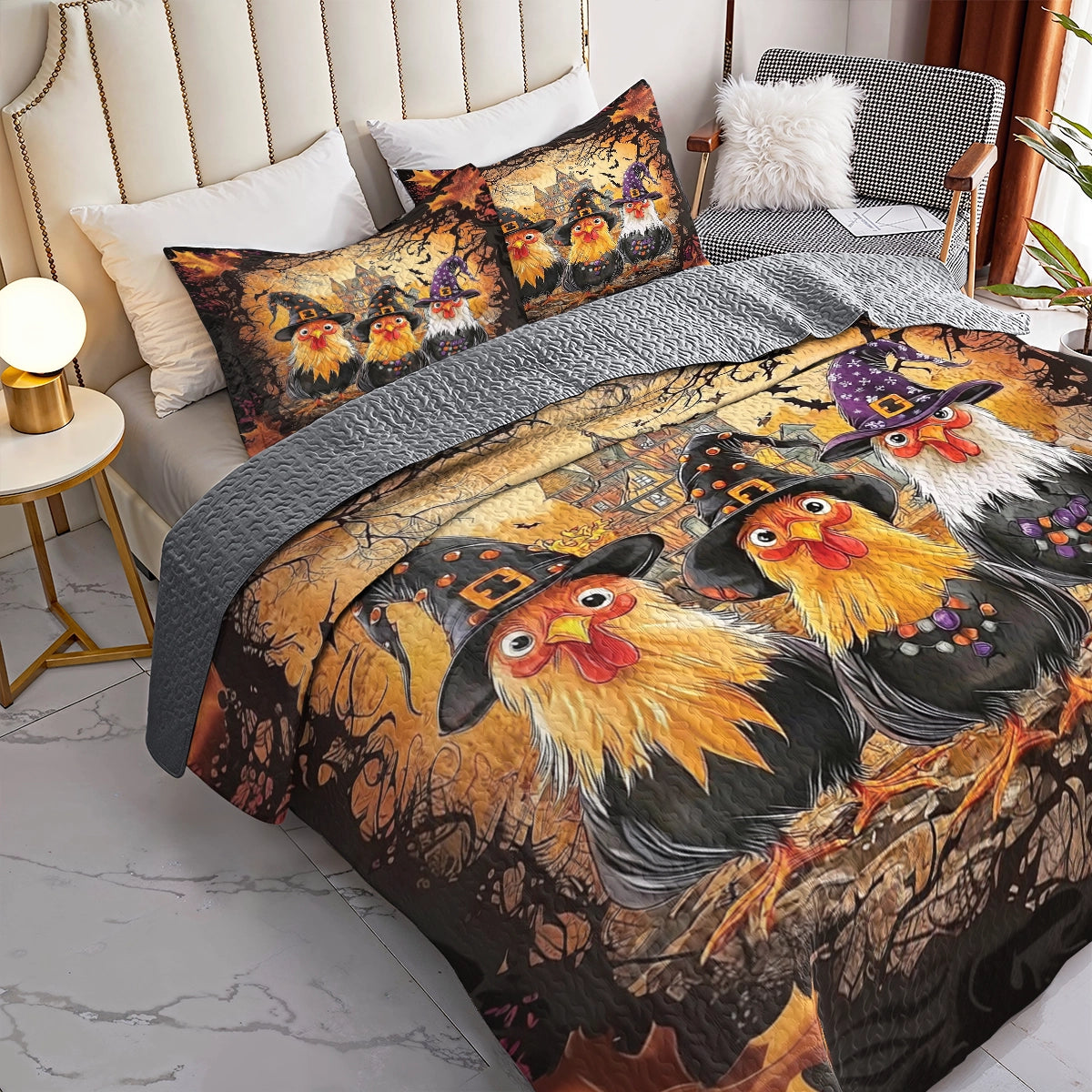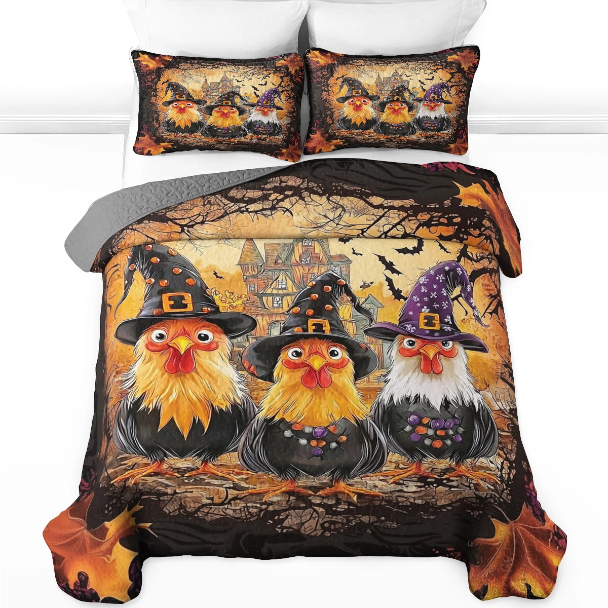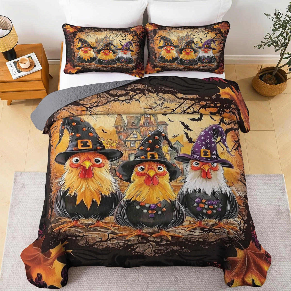 Shineful All Season Quilt 3-Piece Set - Chicken Witchy Halloween