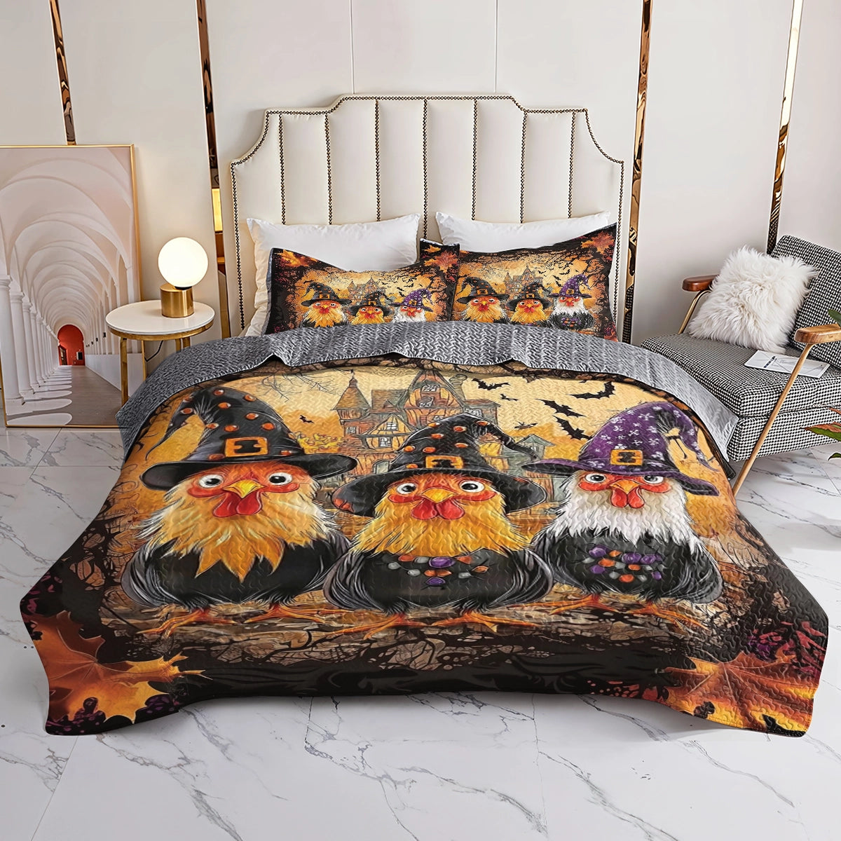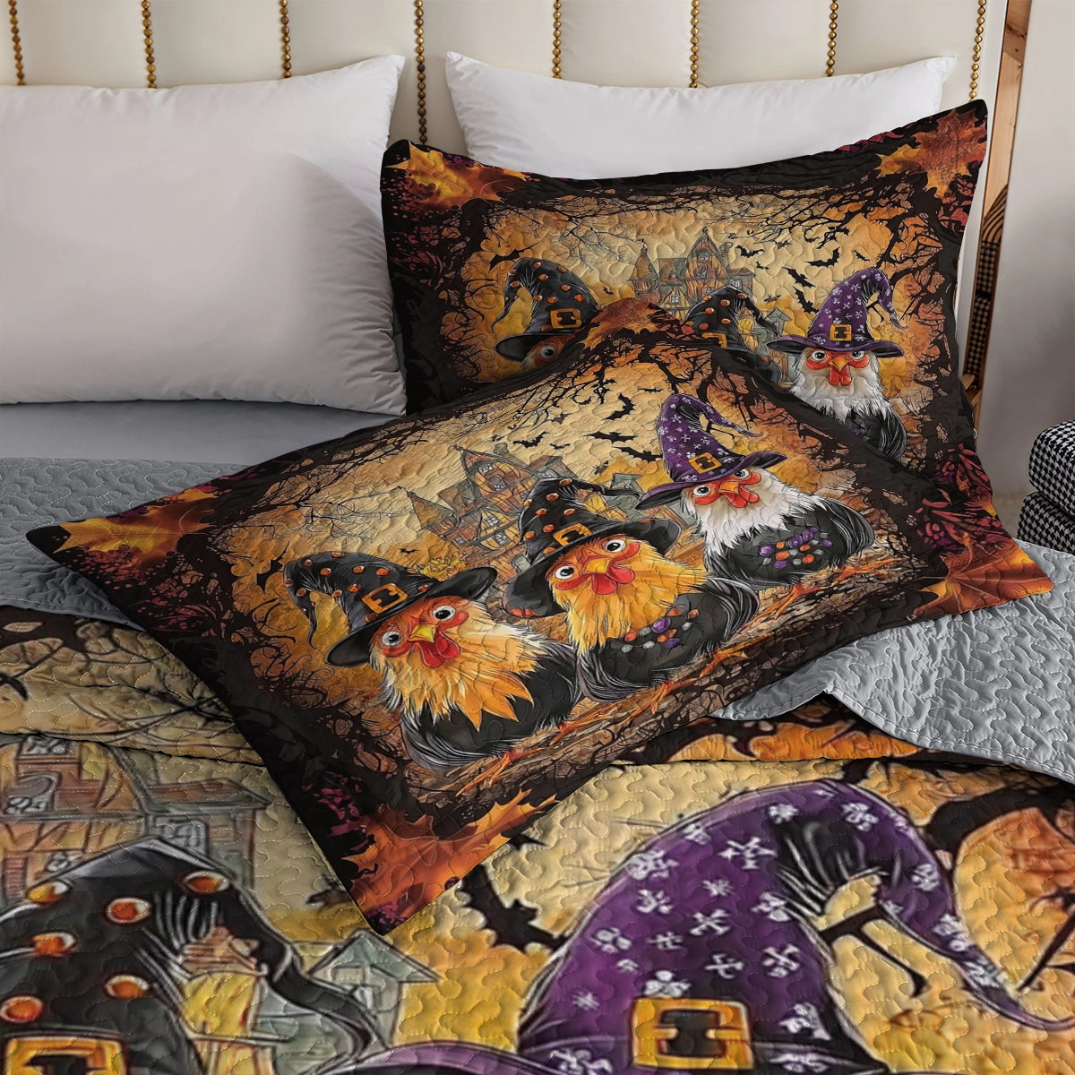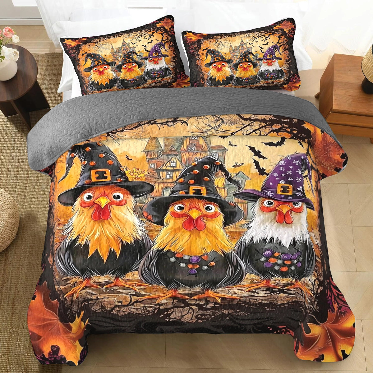 Shineful All Season Quilt 3-Piece Set - Chicken Witchy Halloween
