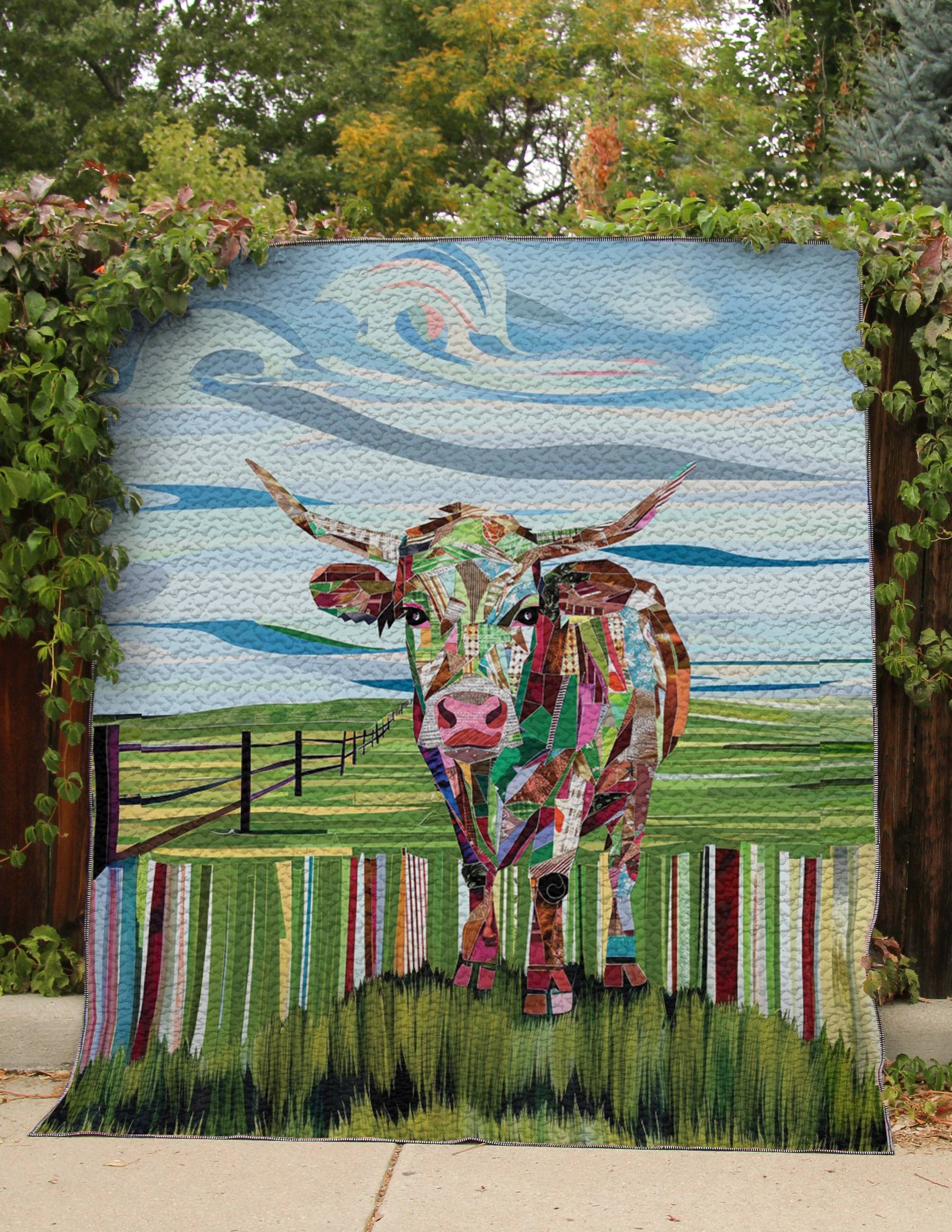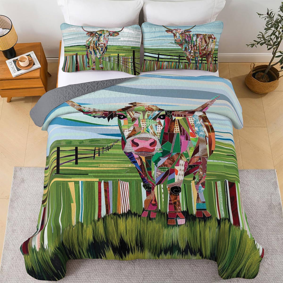 Shineful All Season Quilt 3-Piece Set Colorful Cow