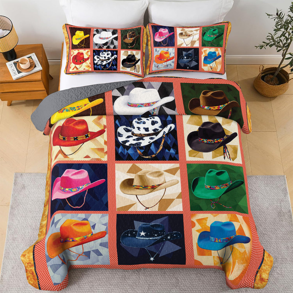 Shineful All Season Quilt 3-Piece Set - Colorful Cowboy Hat
