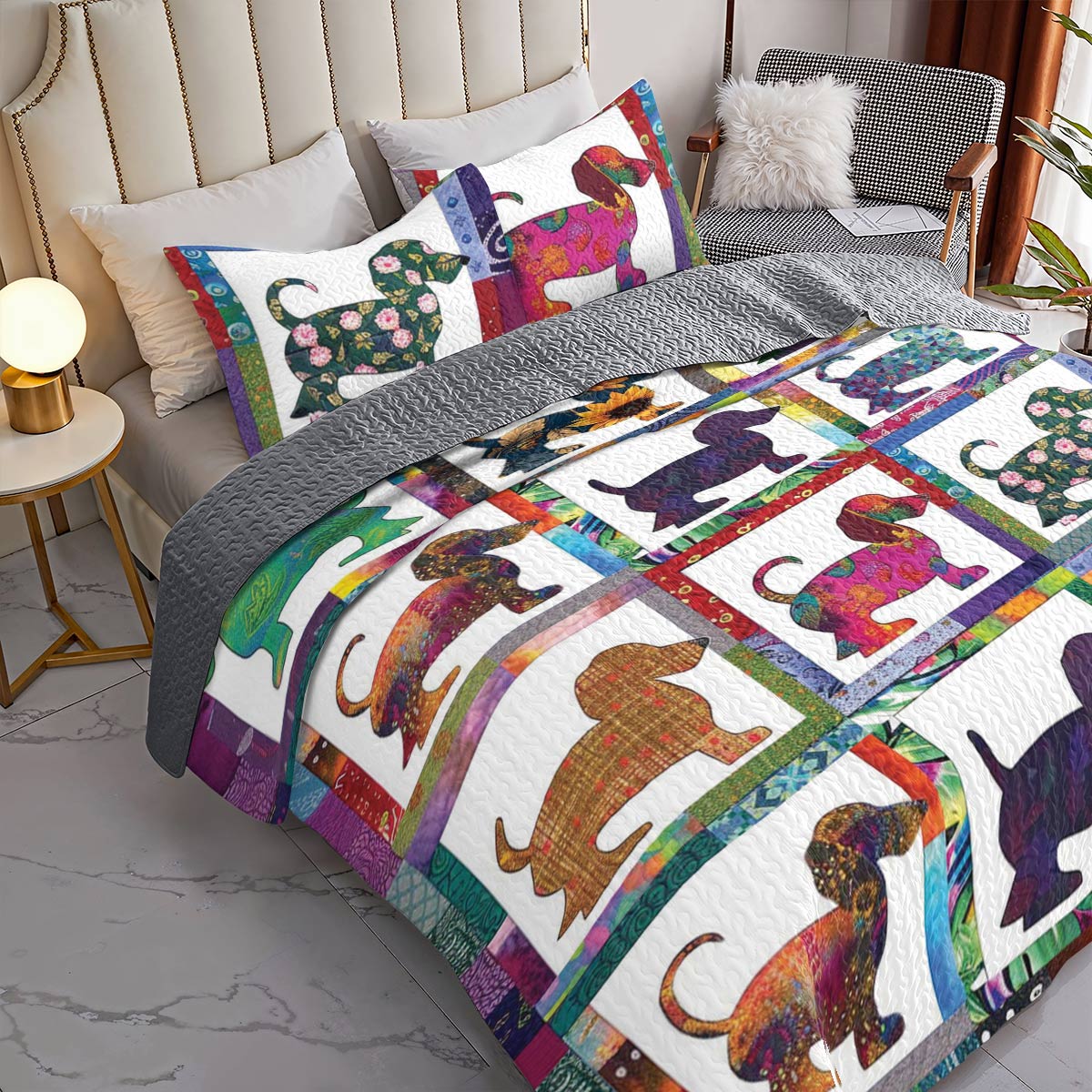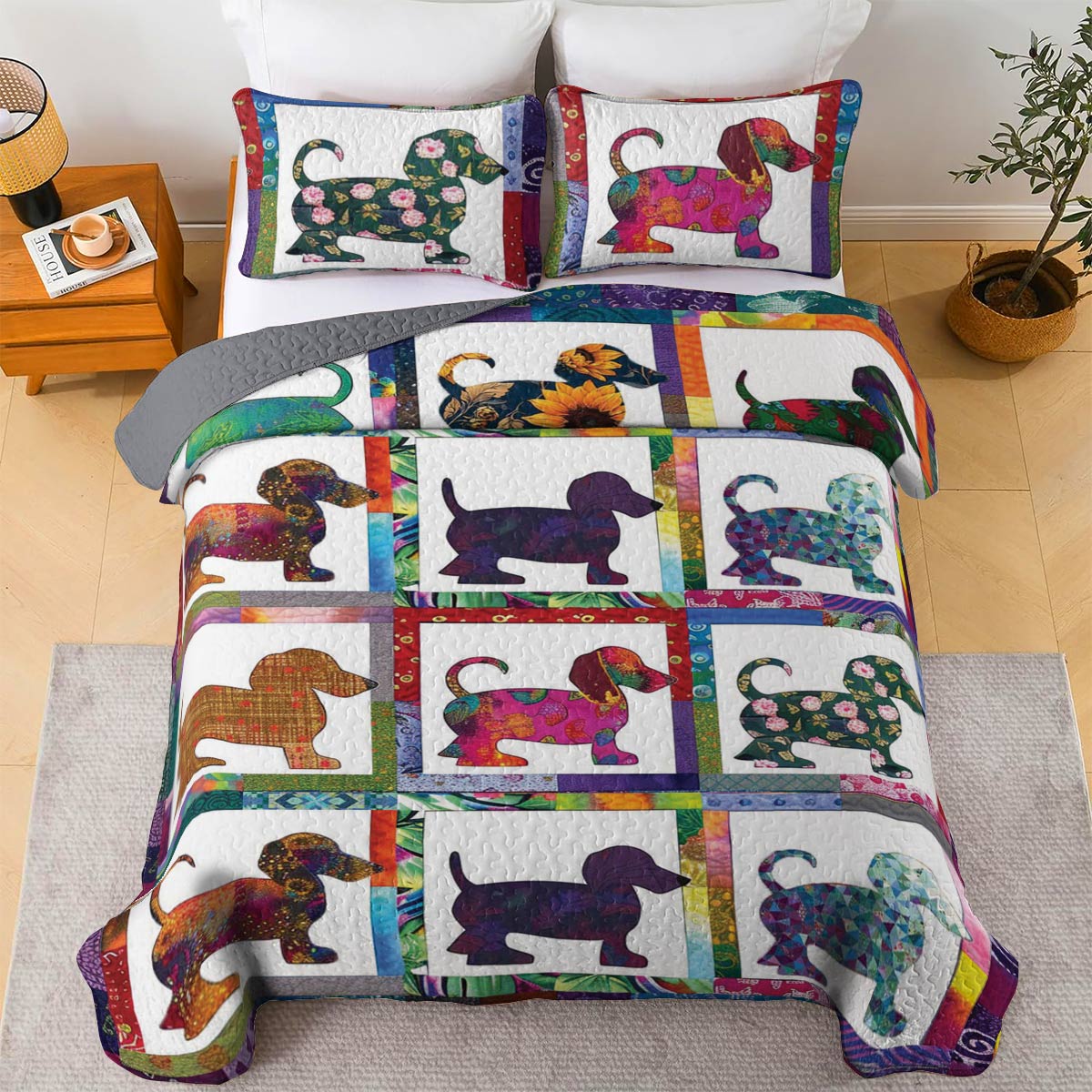 Shineful All Season Quilt 3-Piece Set Colorful Dachshunds