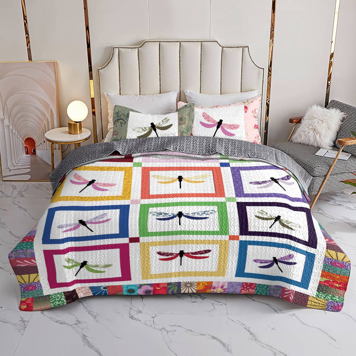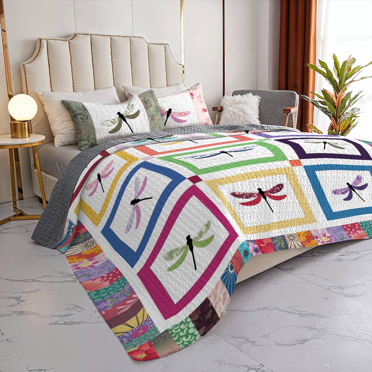 Shineful All Season Quilt 3-Piece Set Colorful Dragonflies