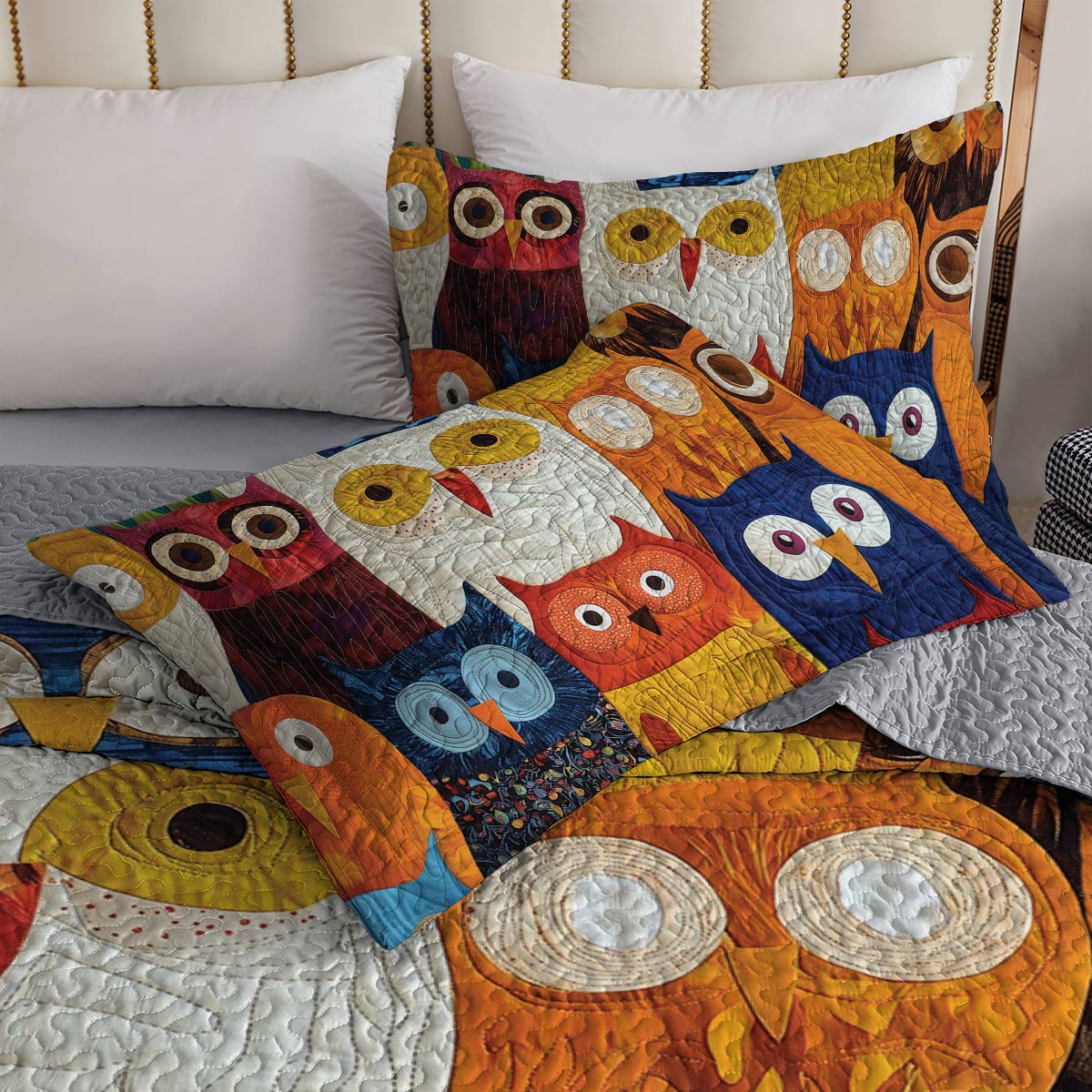 Shineful All Season Quilt 3-Piece Set - Colorful Owl Gathering