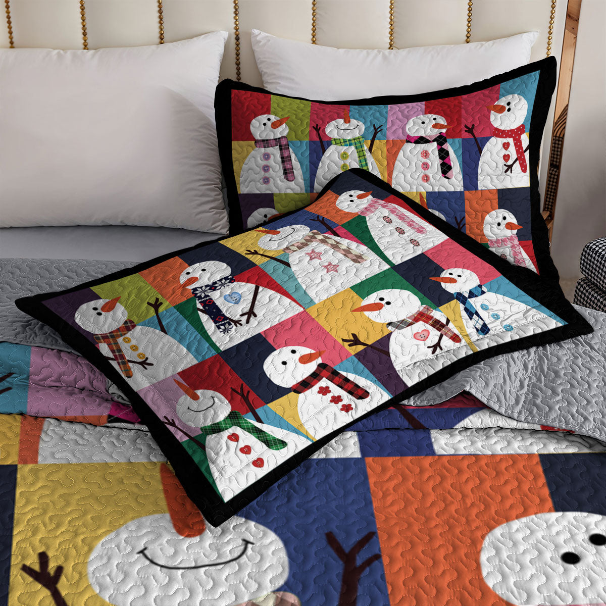 Shineful All Season Quilt 3-Piece Set Colorful Snowman Joy