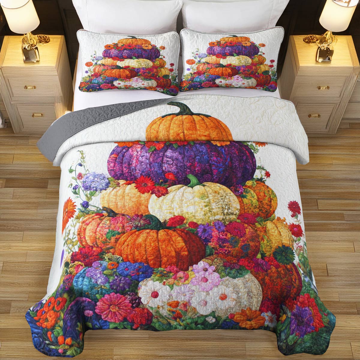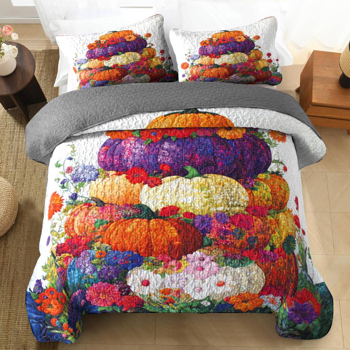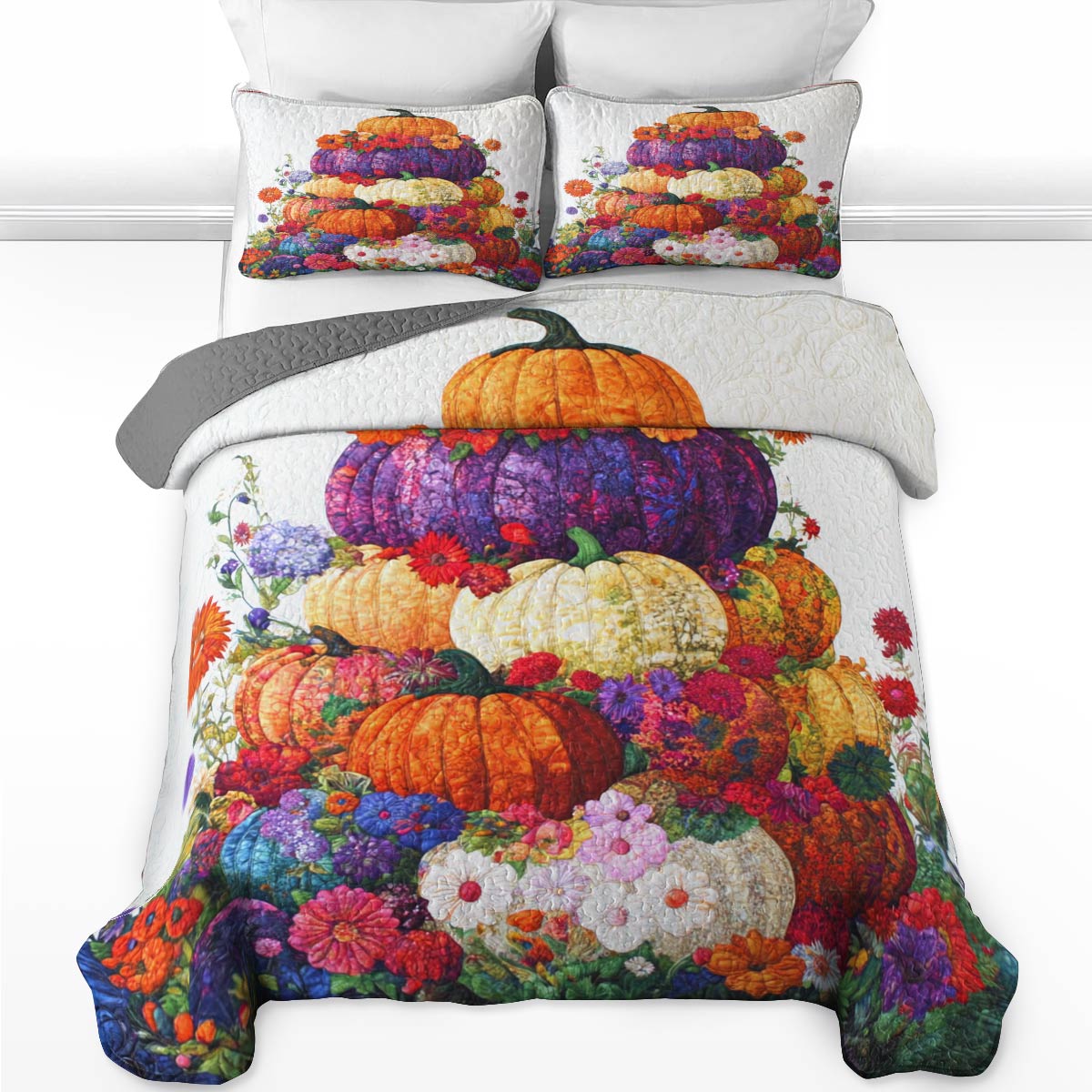Shineful All Season Quilt 3-Piece Set Colorful Stack Of Pumpkins