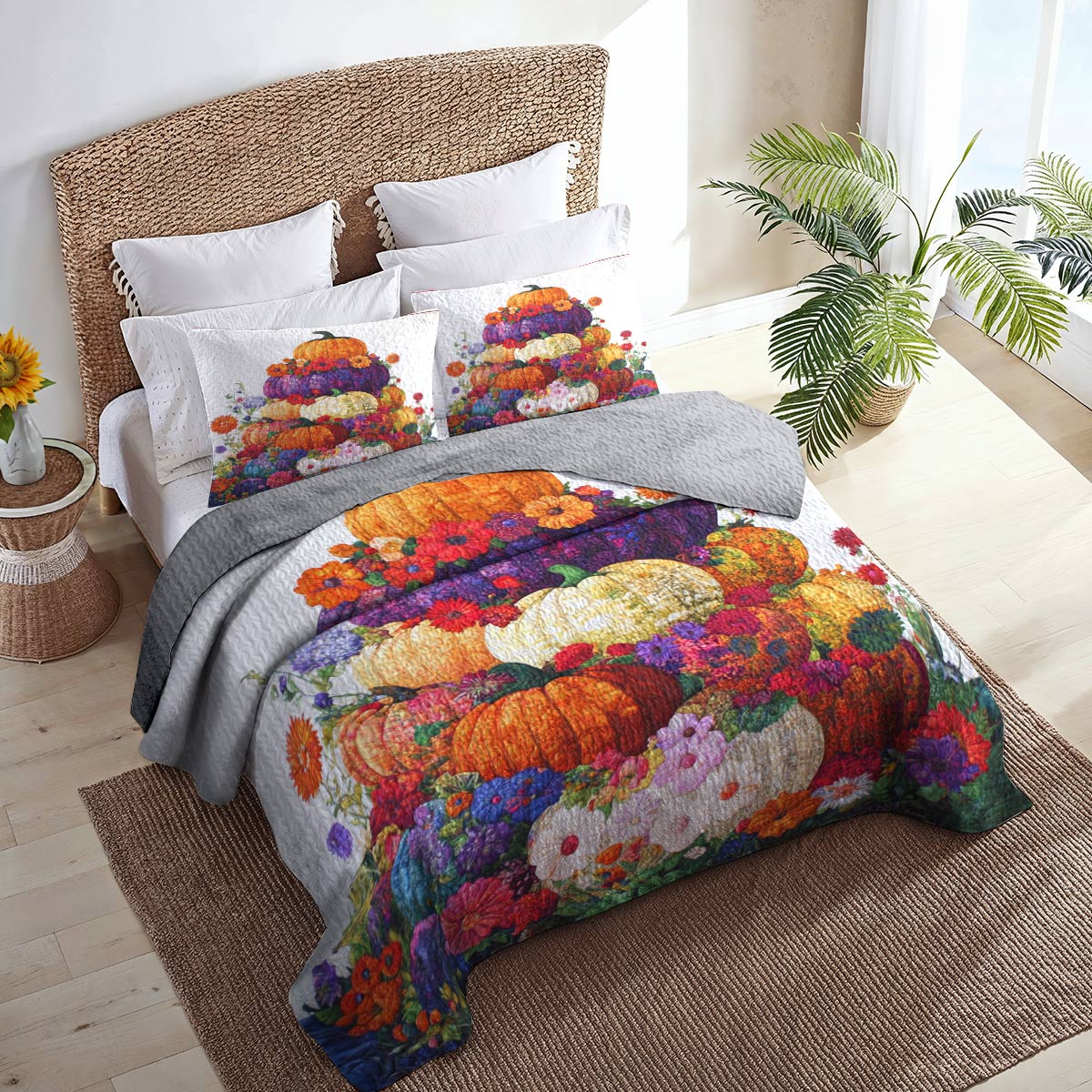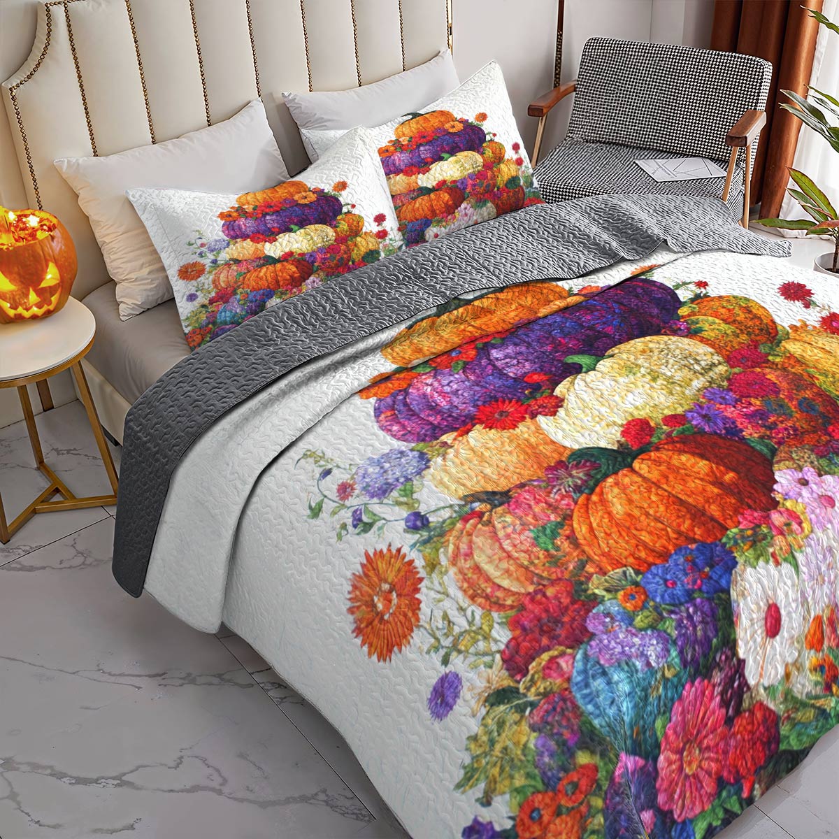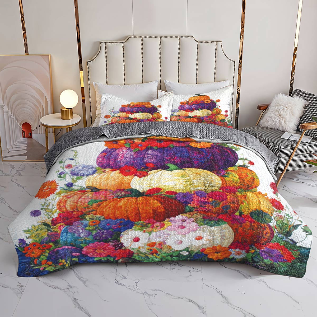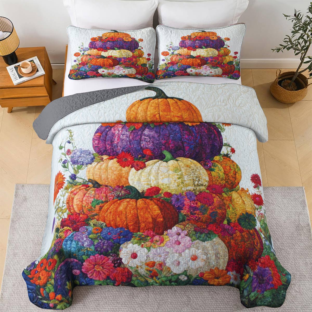 Shineful All Season Quilt 3-Piece Set Colorful Stack Of Pumpkins