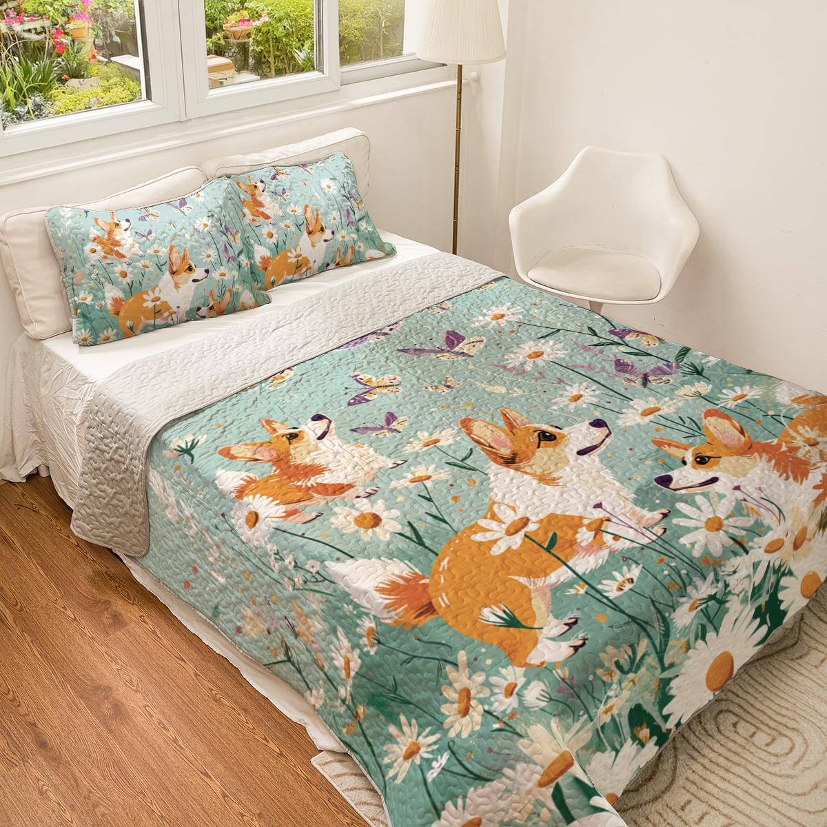 Shineful All Season Quilt 3-Piece Set Corgi Daisy Dreams