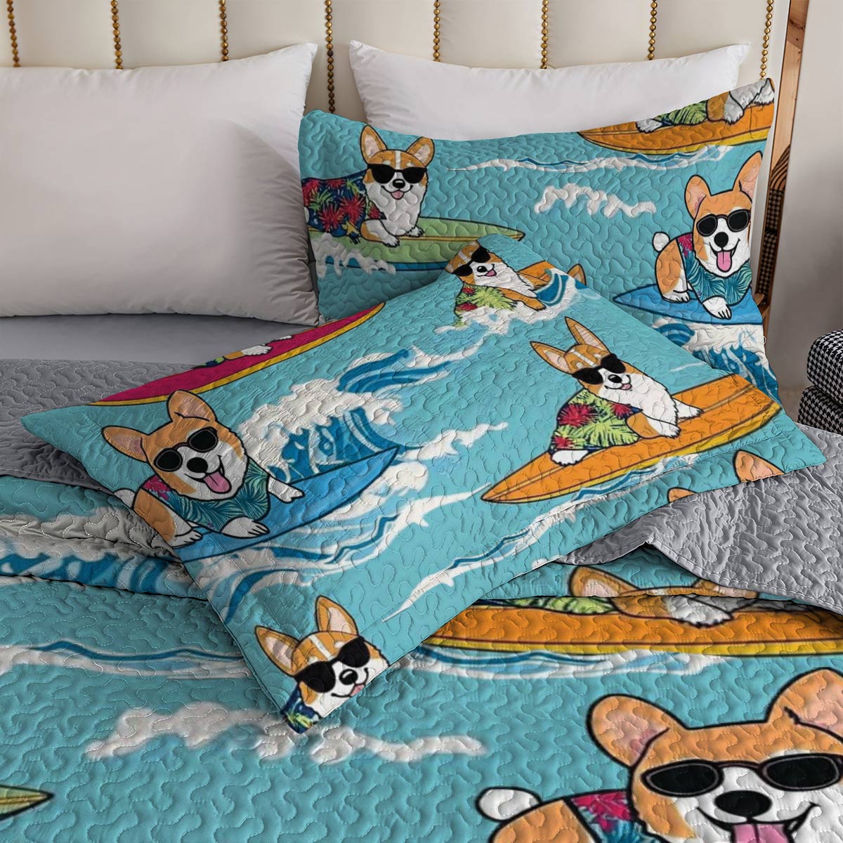 Shineful All Season Quilt 3-Piece Set Corgi Vacation