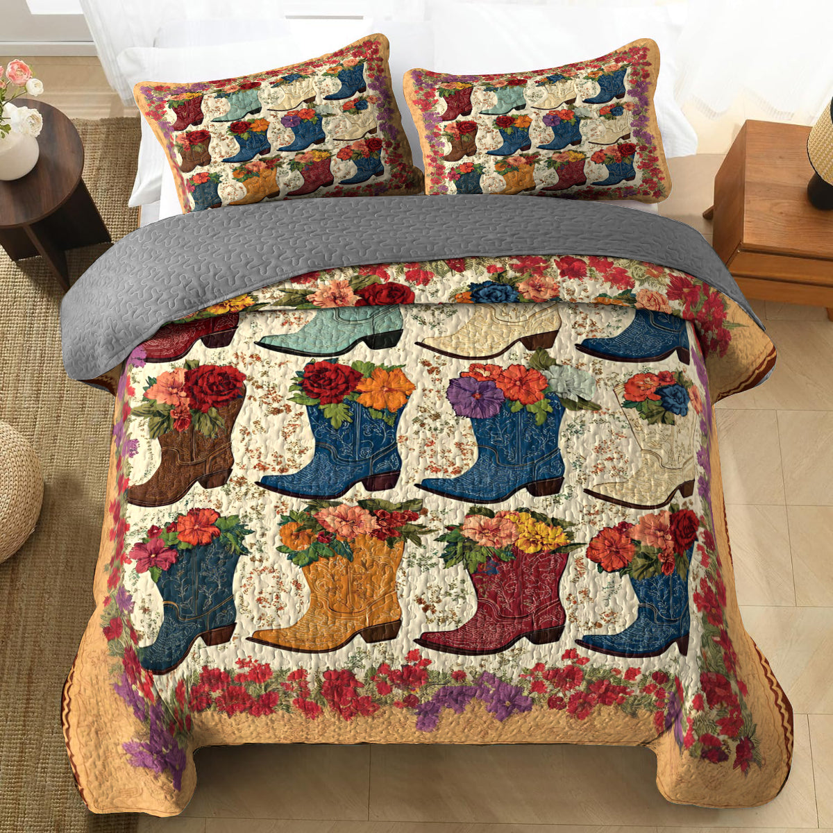 Shineful All Season Quilt 3-Piece Set Cowboy Boots And Flowers Pattern