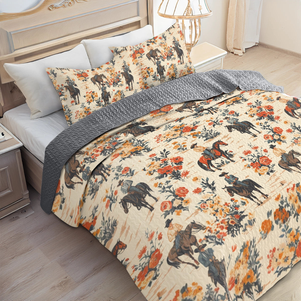 Shineful All Season Quilt 3-Piece Set Cowboy Ranch Blossoms