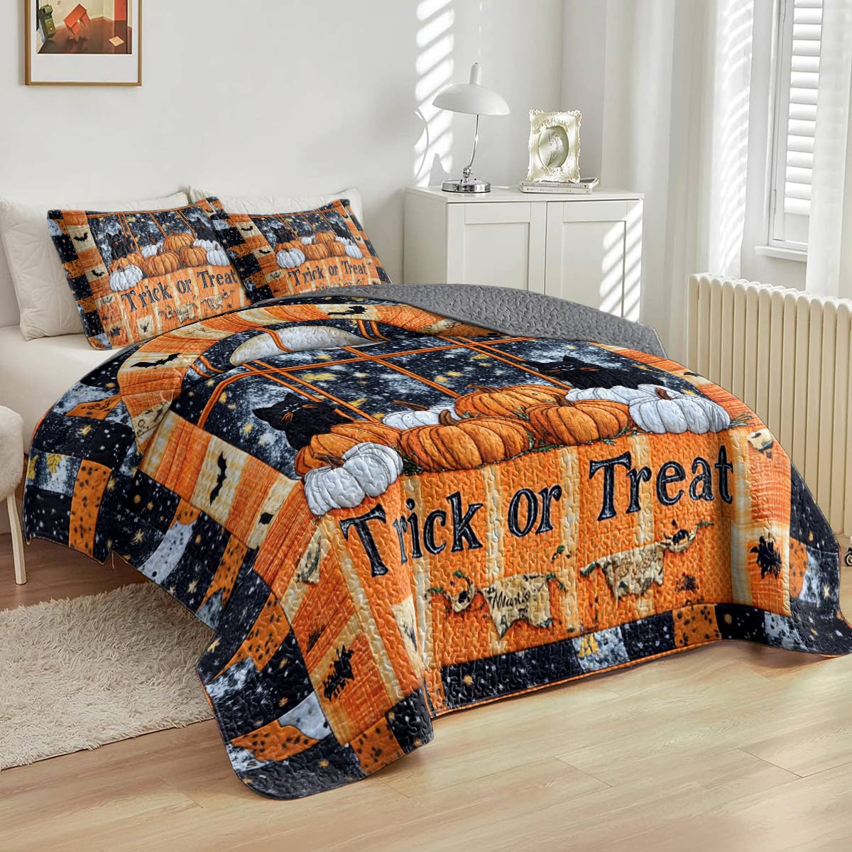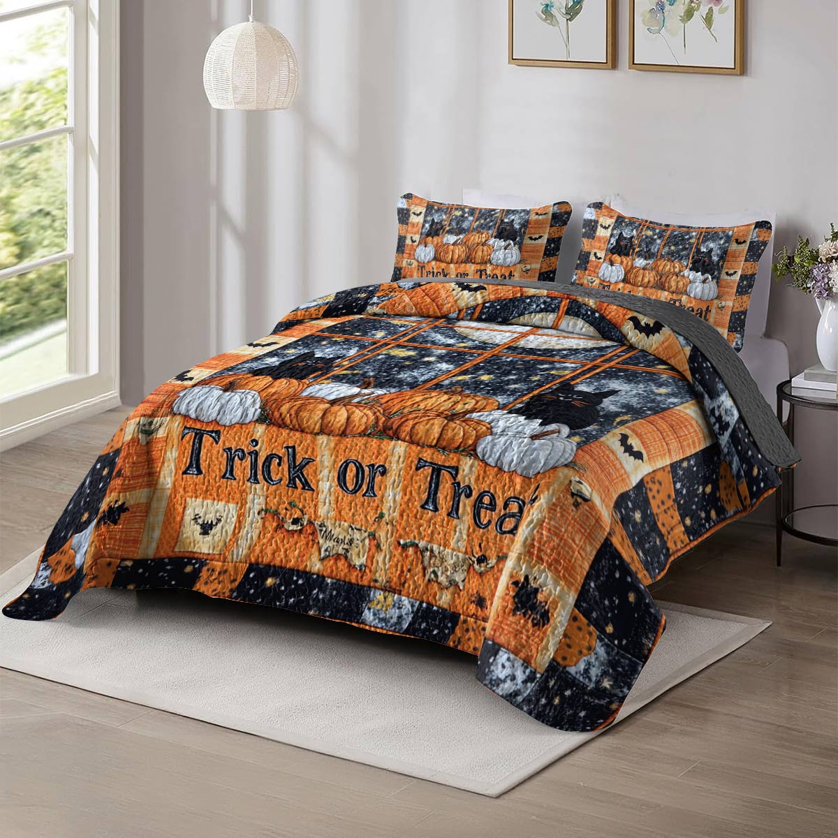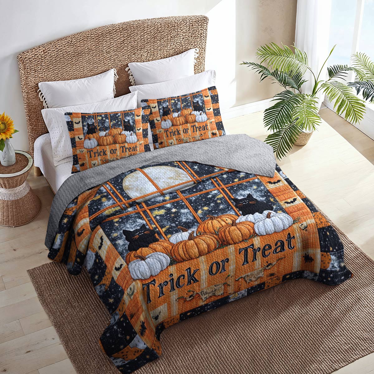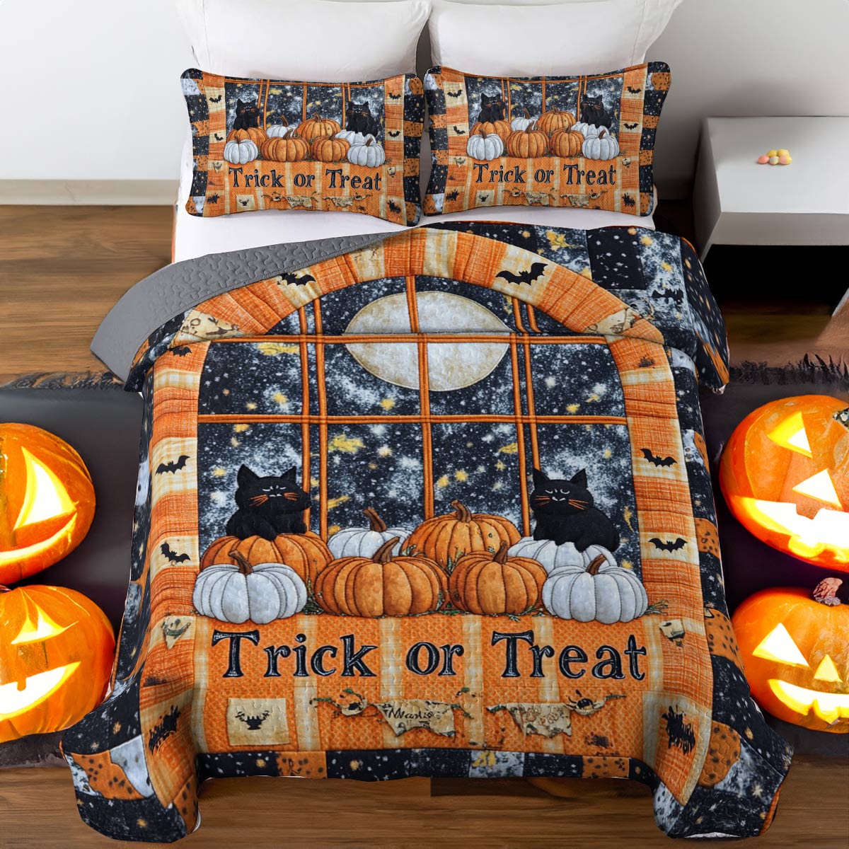 Shineful All Season Quilt 3-Piece Set Cute Fat Black Cats Pumpkins Halloween