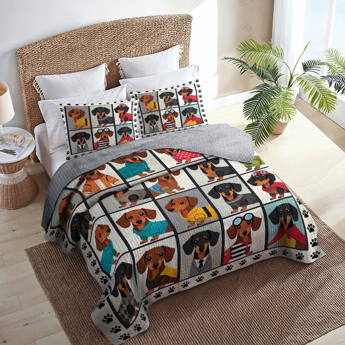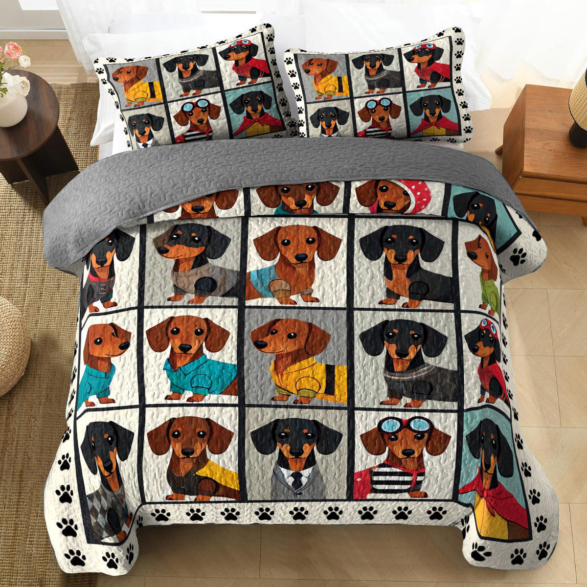Shineful All Season Quilt 3-Piece Set Dachshund Cartoon
