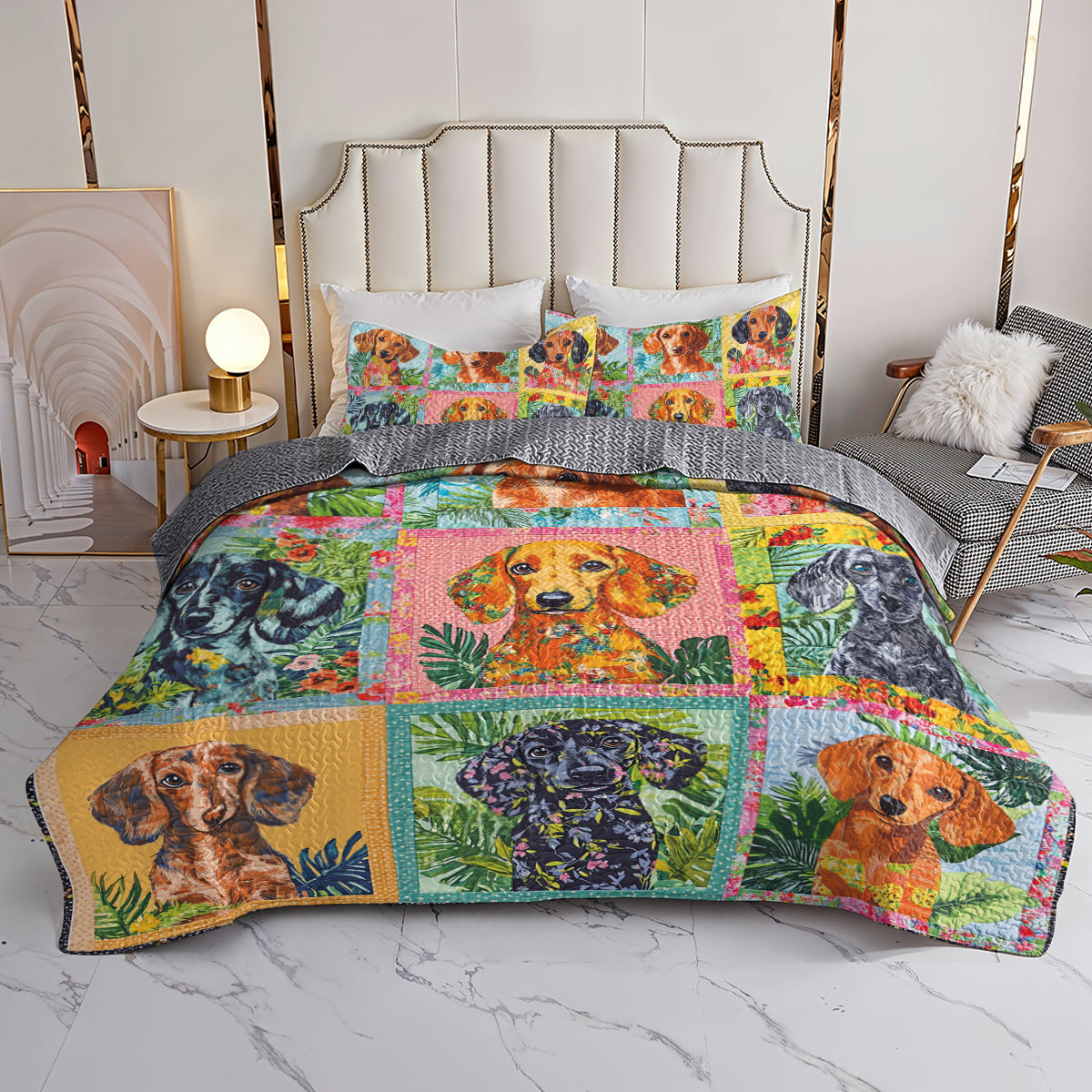 Shineful All Season Quilt 3-Piece Set Dachshund Patchwork Collection