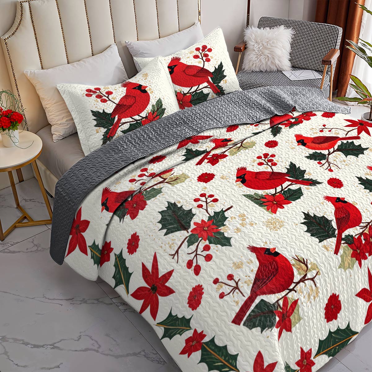 Shineful All Season Quilt 3-Piece Set Dazzling Cardinals