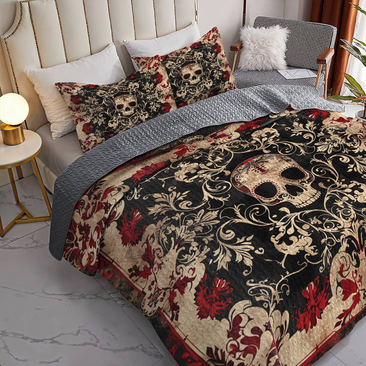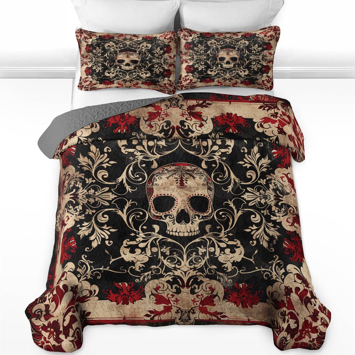 Shineful All Season Quilt 3-Piece Set Delicate Sugar Skull Lovely