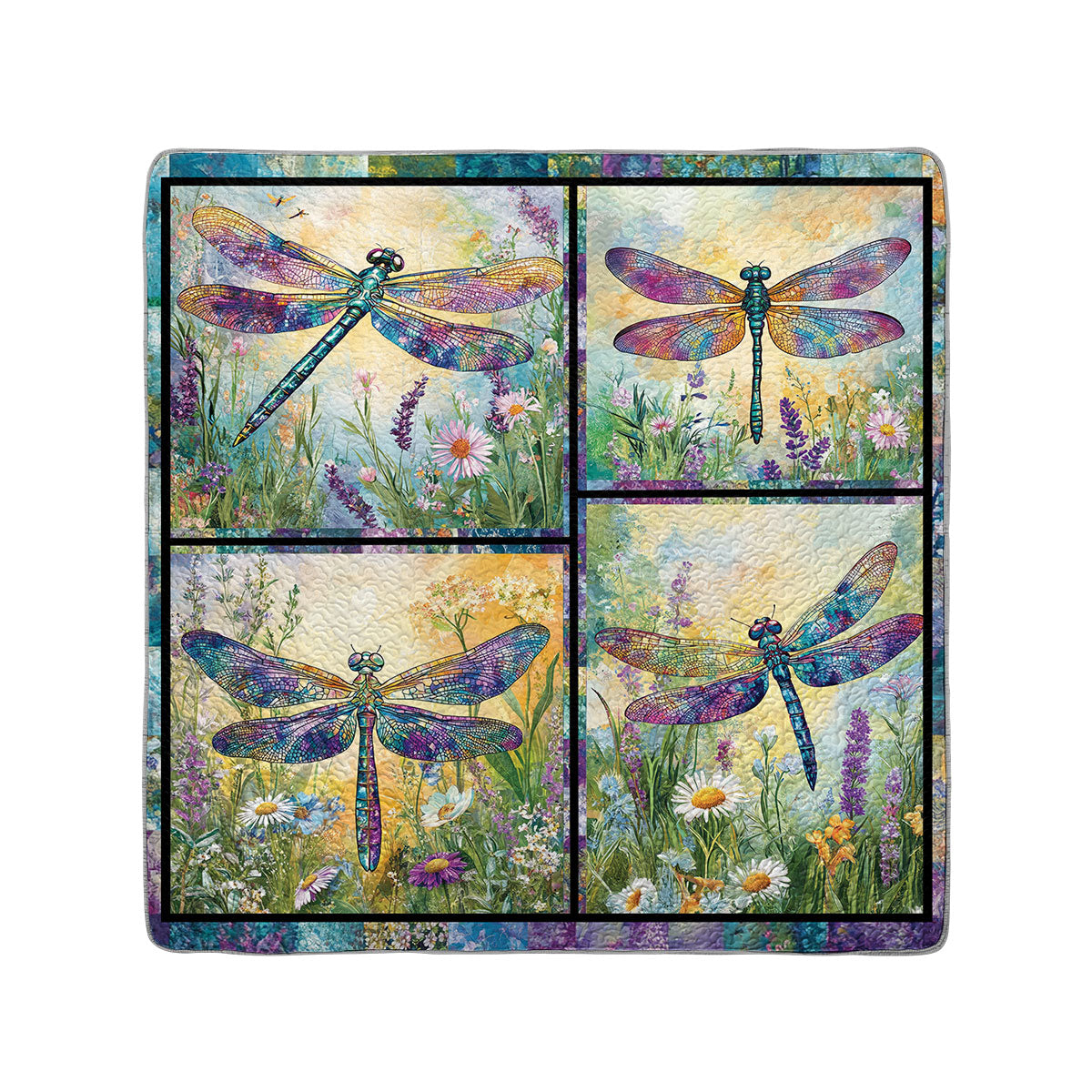 Shineful All Season Quilt 3-Piece Set Dragonfly Flower Garden