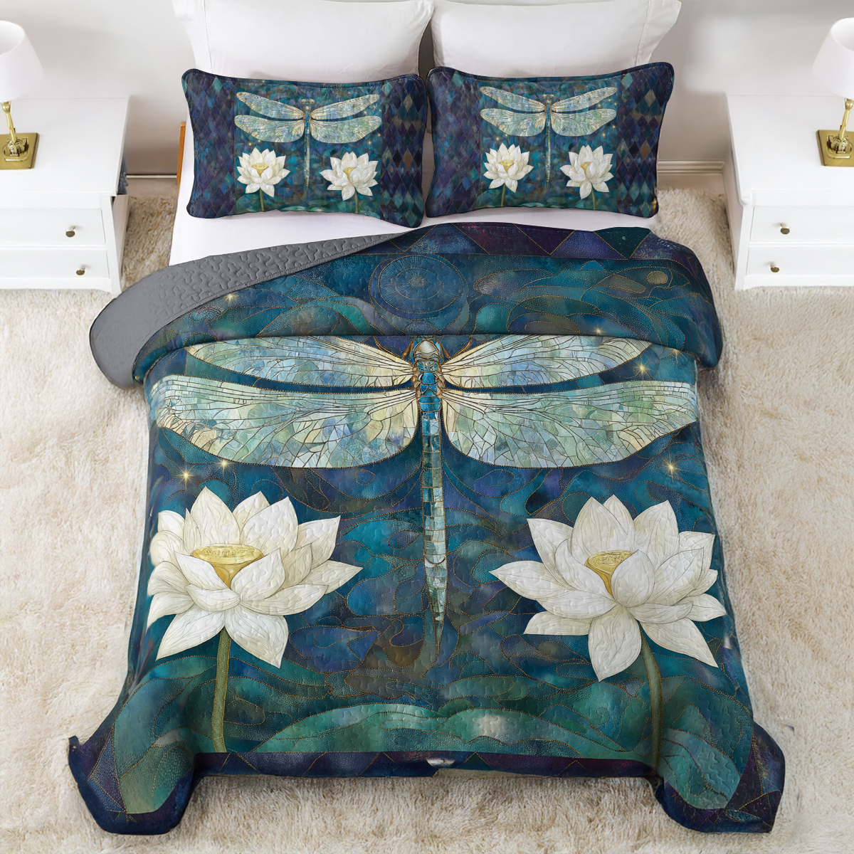 Shineful All Season Quilt 3-Piece Set Dragonfly Harmony