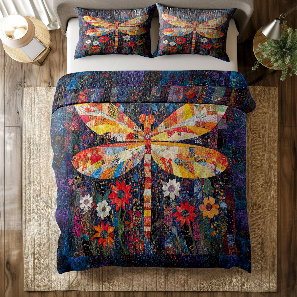 Shineful All Season Quilt 3-Piece Set Dragonfly’s Blooming Realm