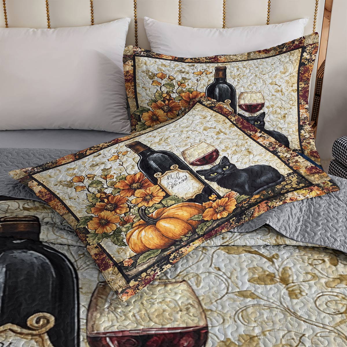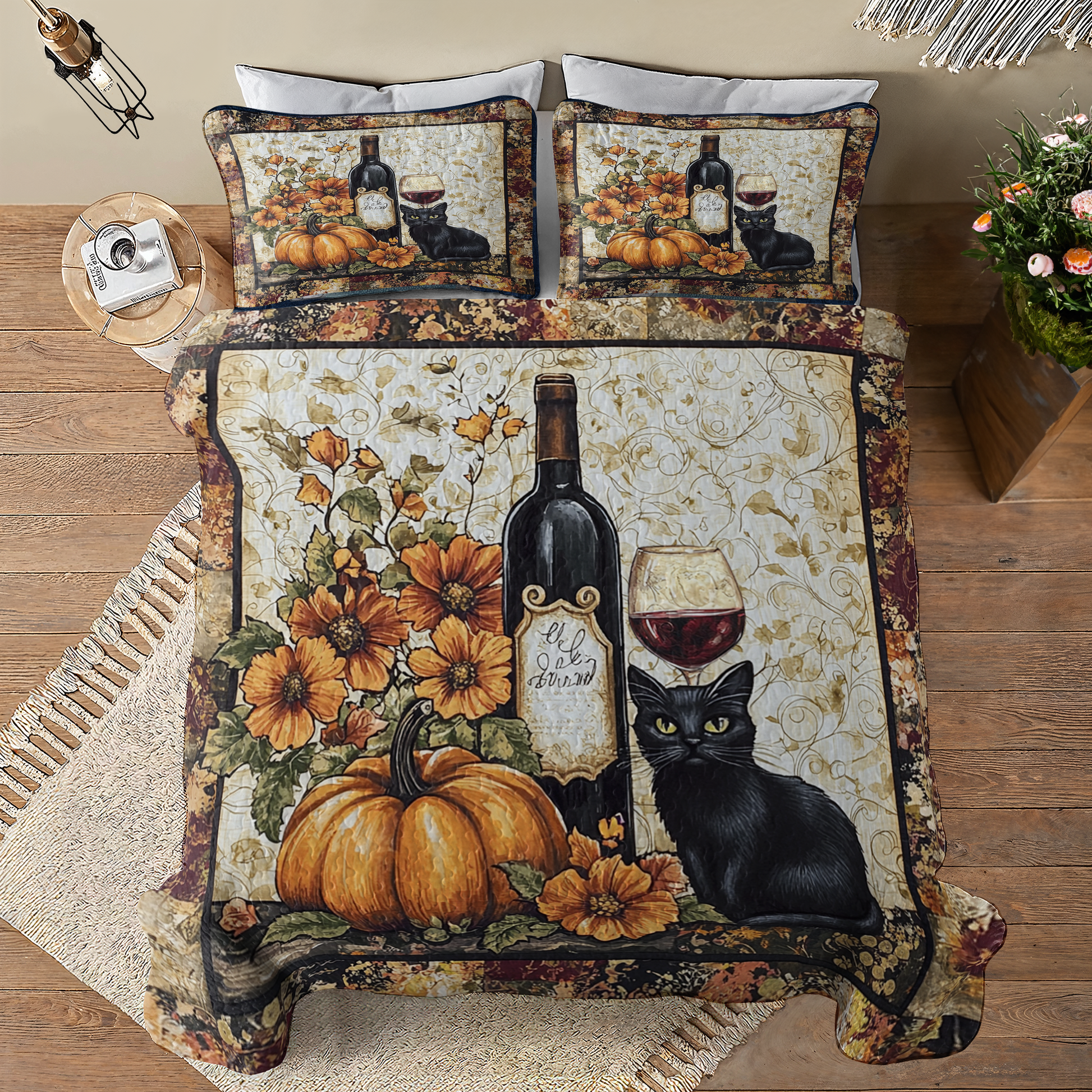 Shineful All Season Quilt 3-Piece Set Elegance Black Cat Wine Lovely