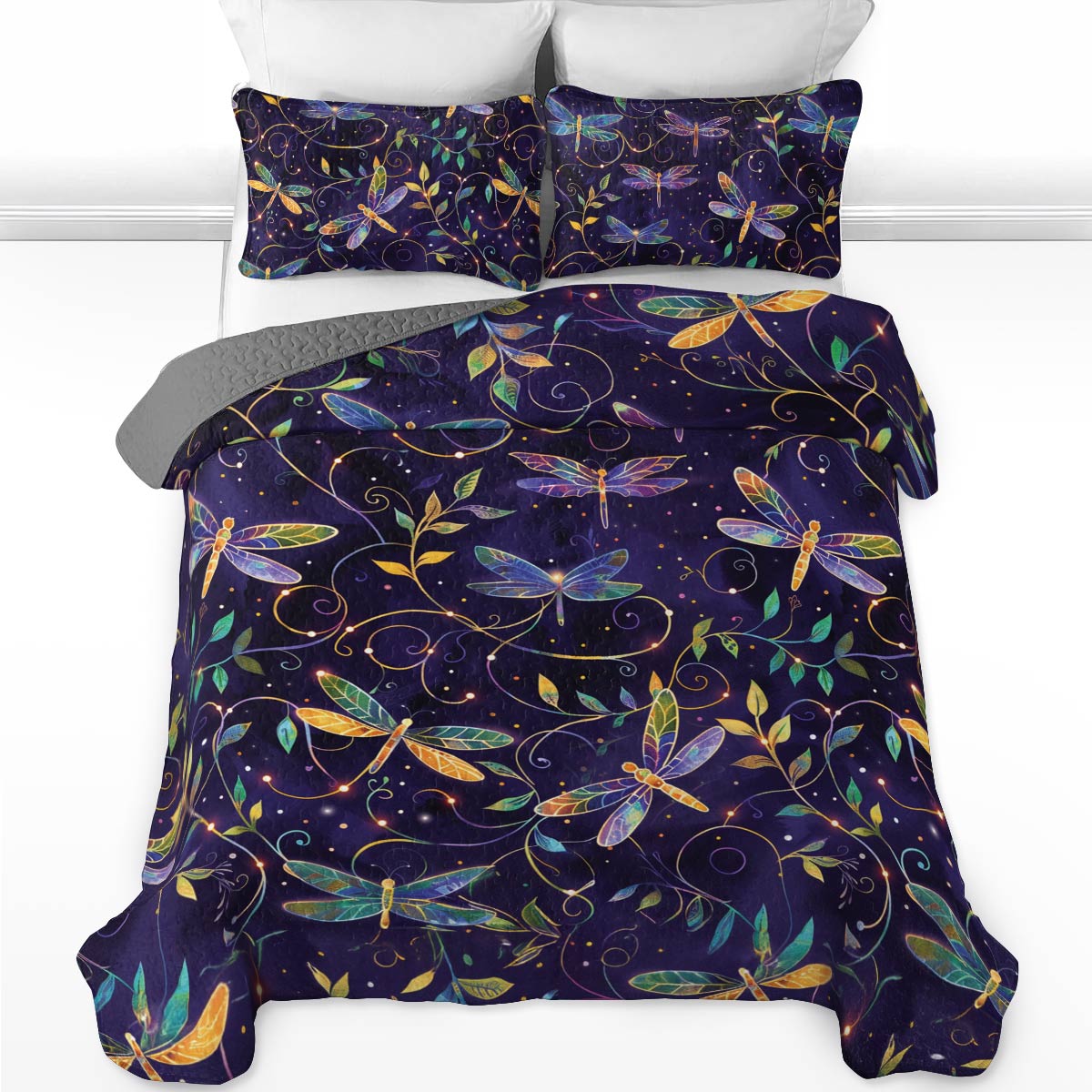 Shineful All Season Quilt 3-Piece Set Elegent Dragonfly