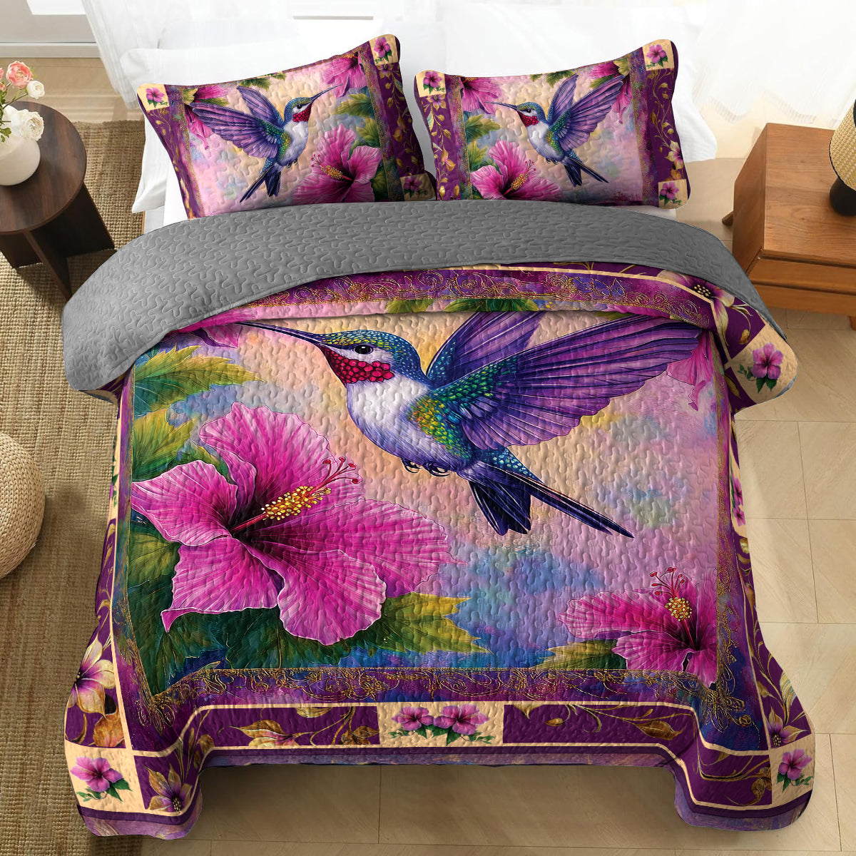 Shineful All Season Quilt 3-Piece Set - Enchanted Flight: Hummingbird and Hibiscus