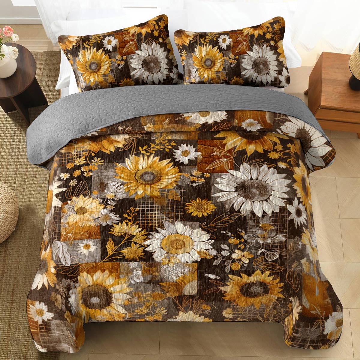 Shineful All Season Quilt 3-Piece Set Fall In Love Sunflowers