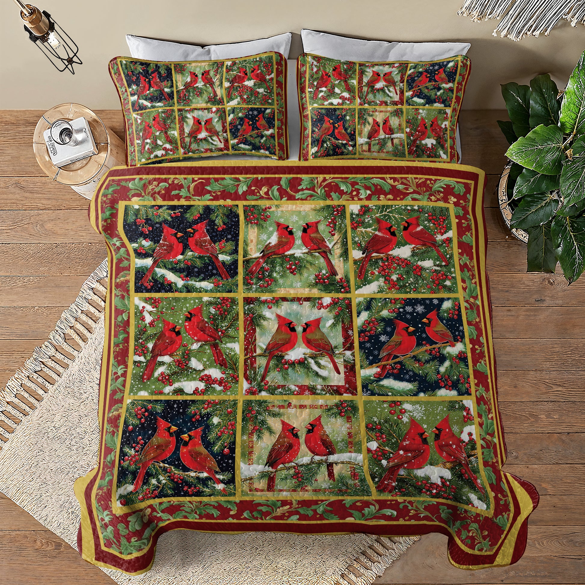 Shineful All Season Quilt 3-Piece Set - Festive Cardinal