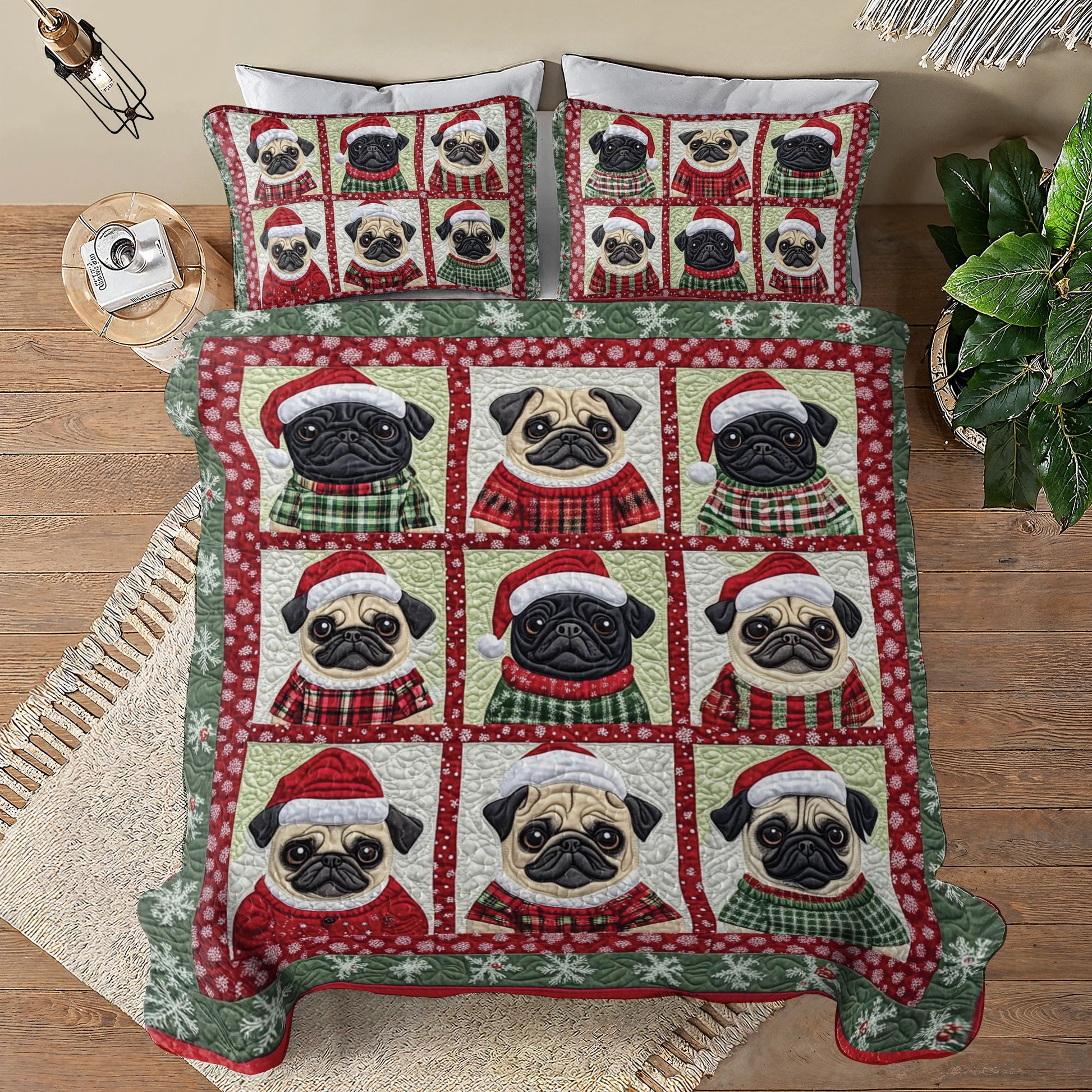 Shineful All Season Quilt 3-Piece Set Festive Pugs