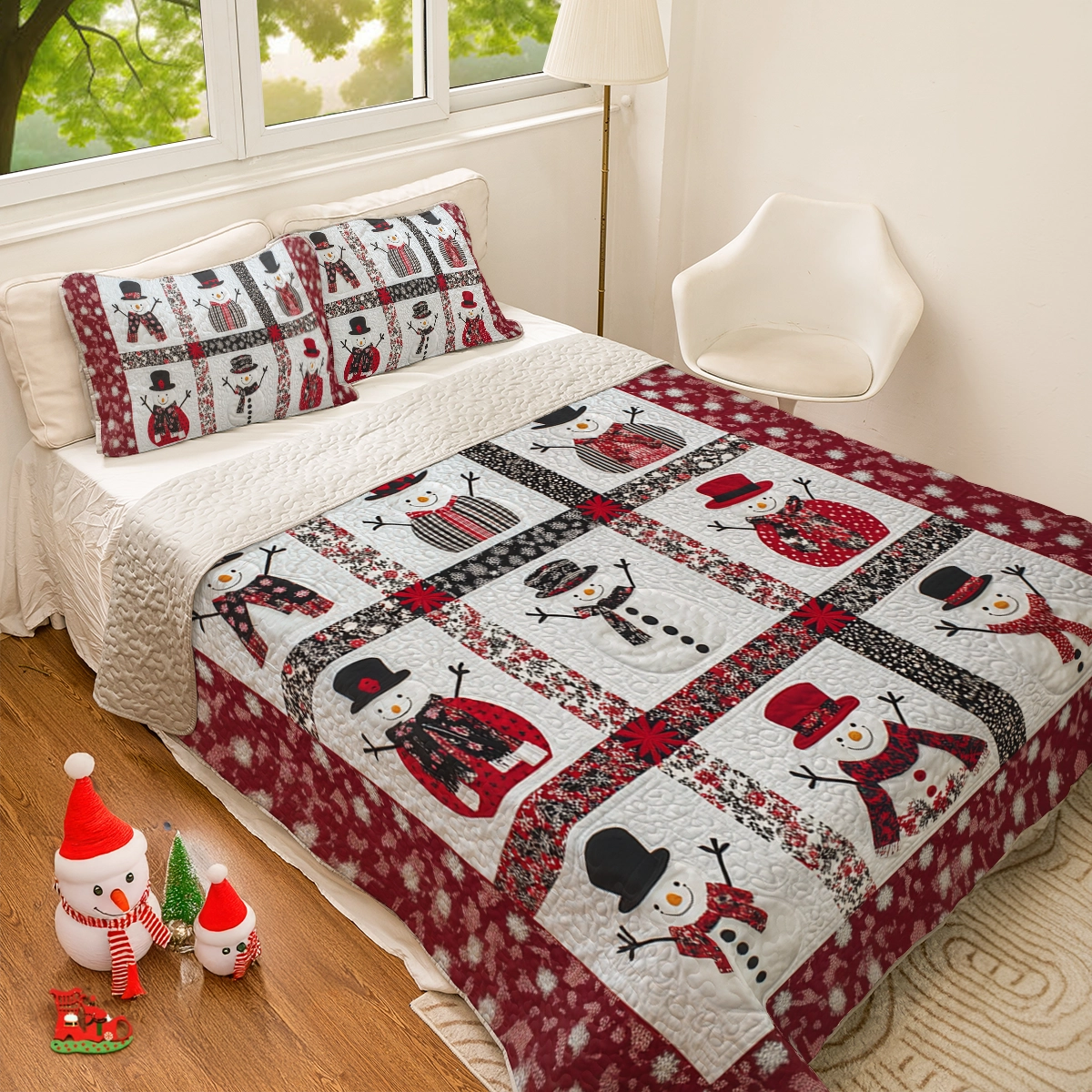 Shineful All Season Quilt 3-Piece Set Festive Snowman Patchwork