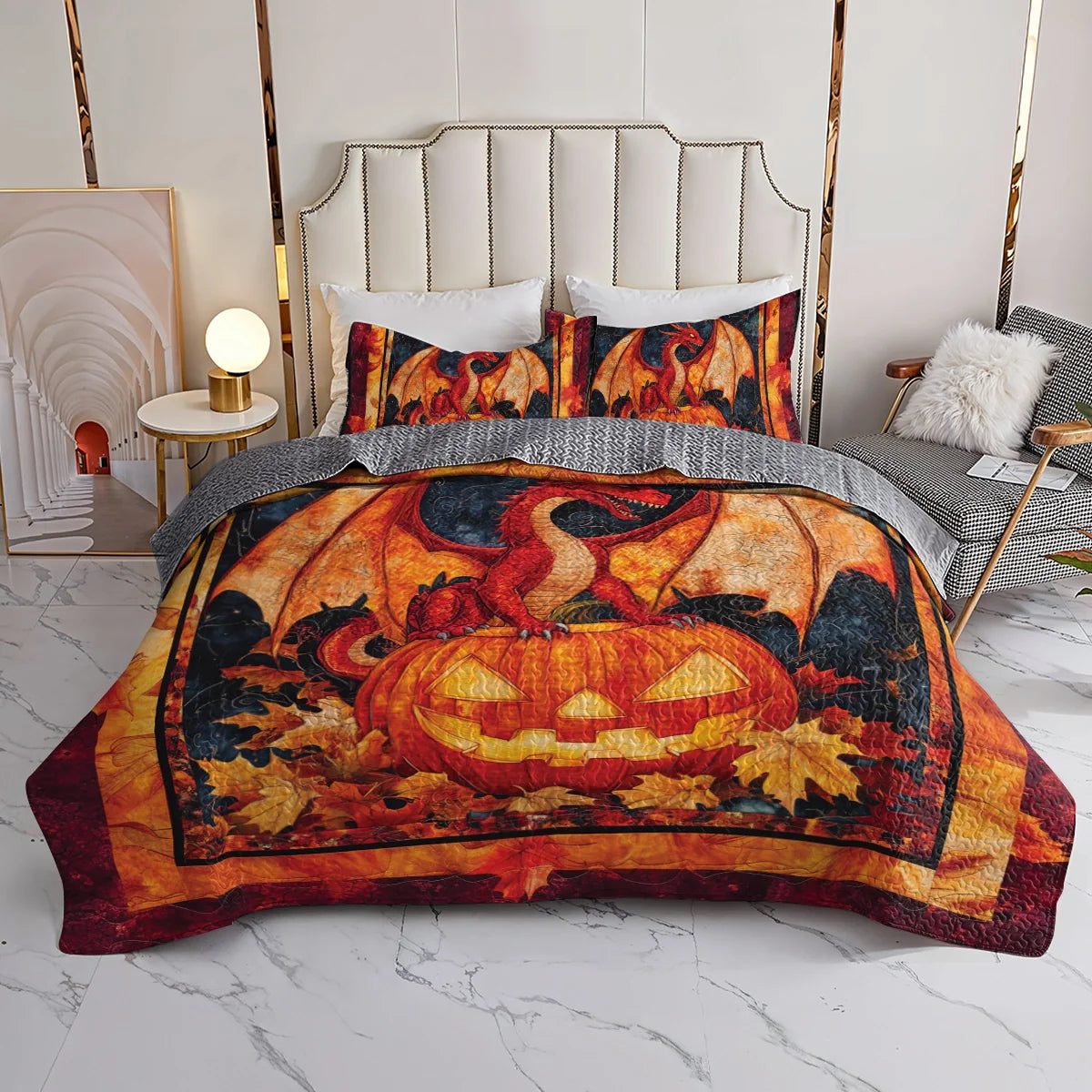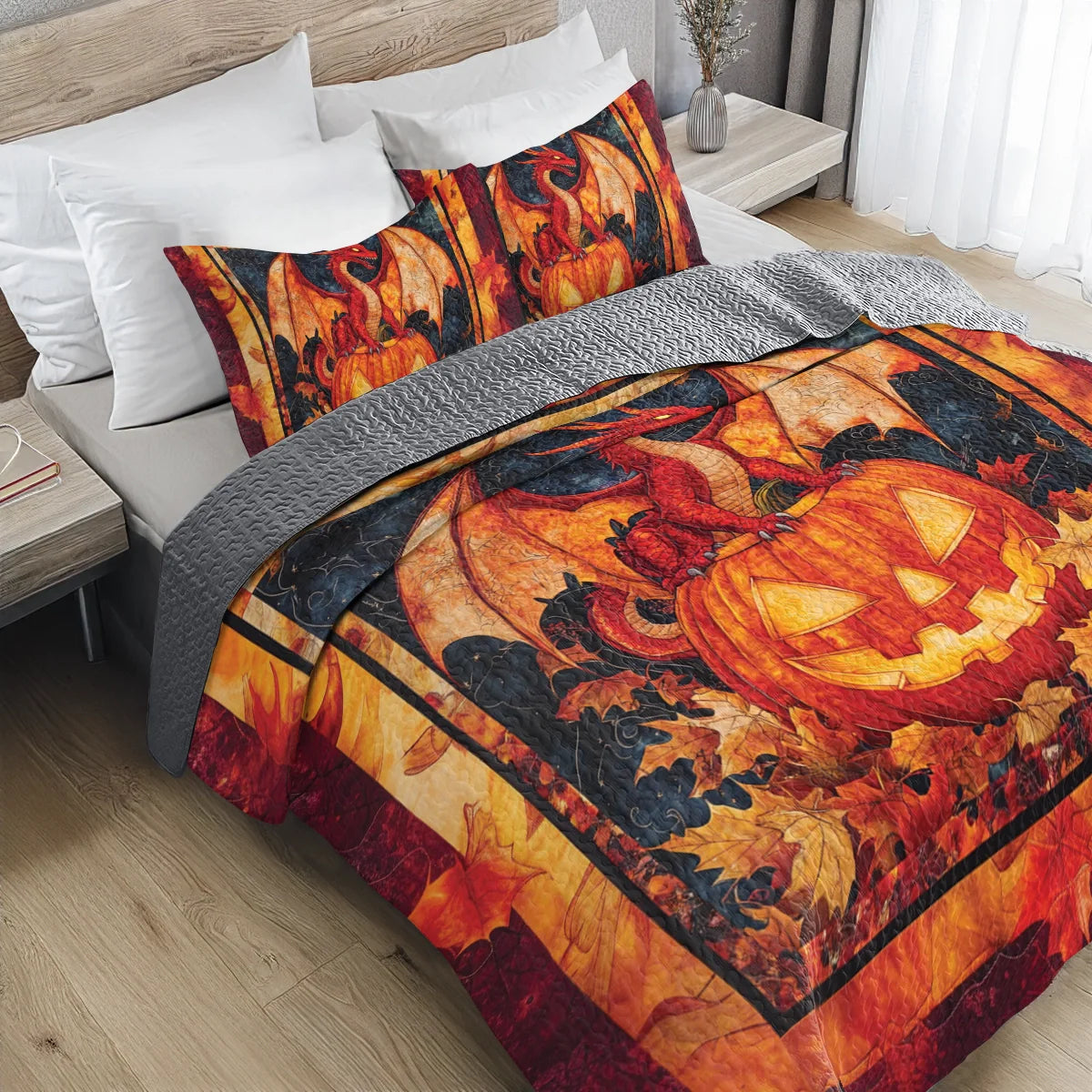 Shineful All Season Quilt 3-Piece Set Fiery Fall Dragon