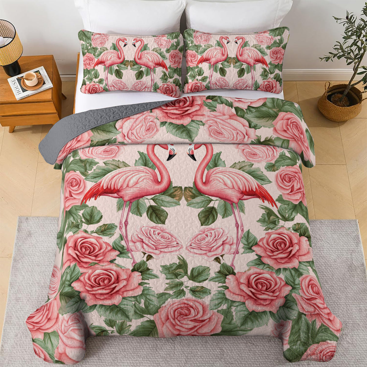 Shineful All Season Quilt 3-Piece Set Flamingo Rose