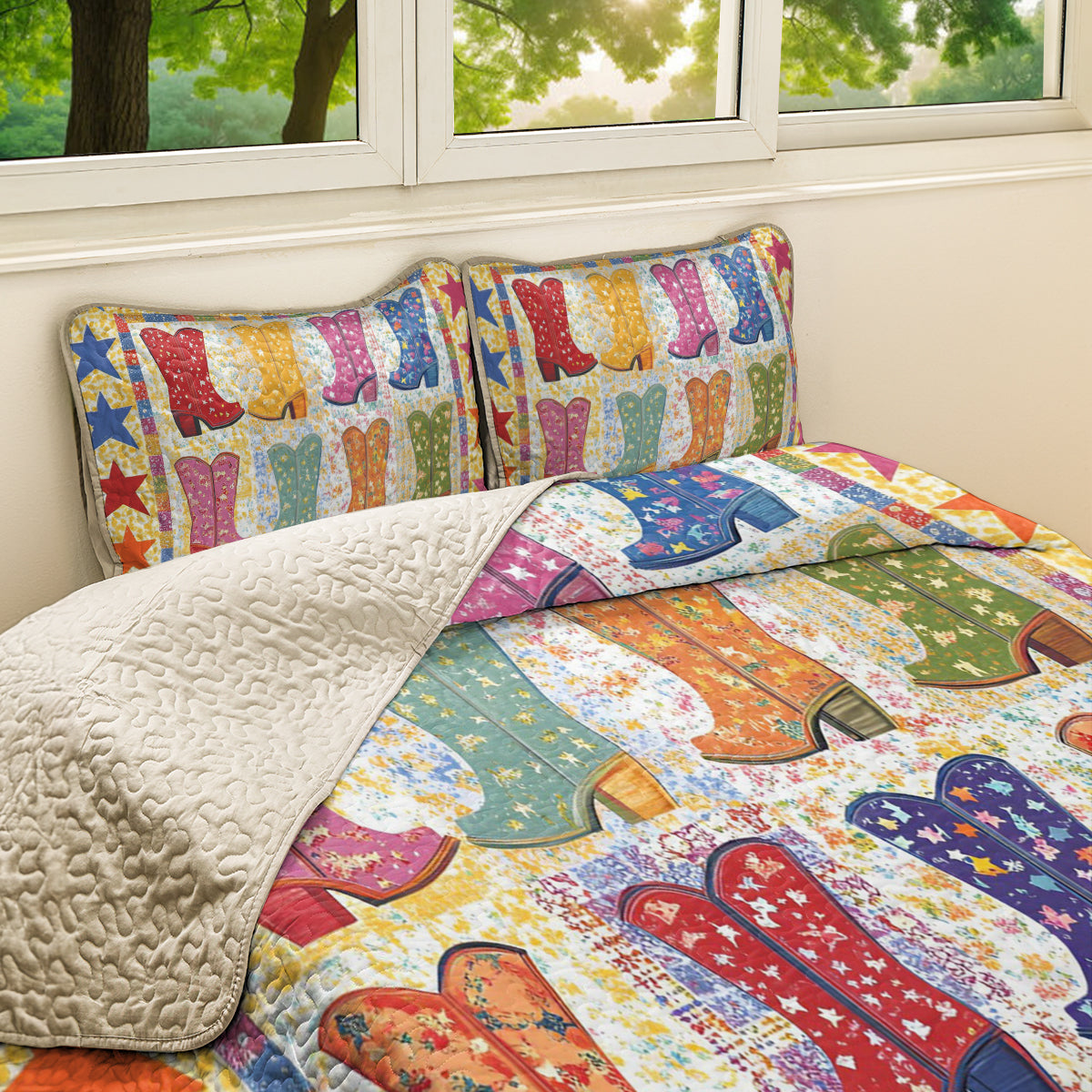 Shineful All Season Quilt 3-Piece Set Floral Cowboy Boots