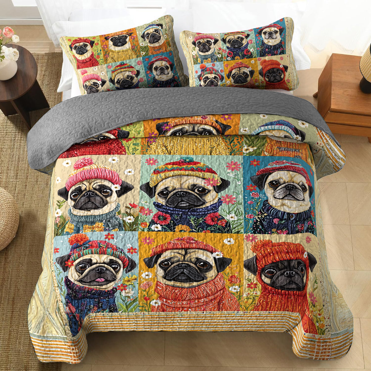 Shineful All Season Quilt 3-Piece Set Floral Pug Springtime