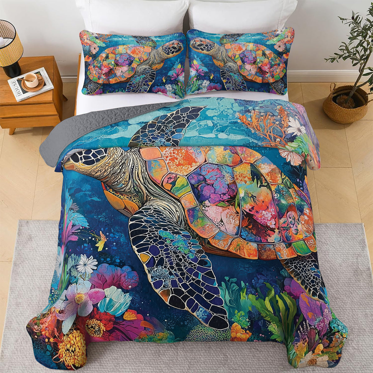 Shineful All Season Quilt 3-Piece Set Floral Sea Turtle
