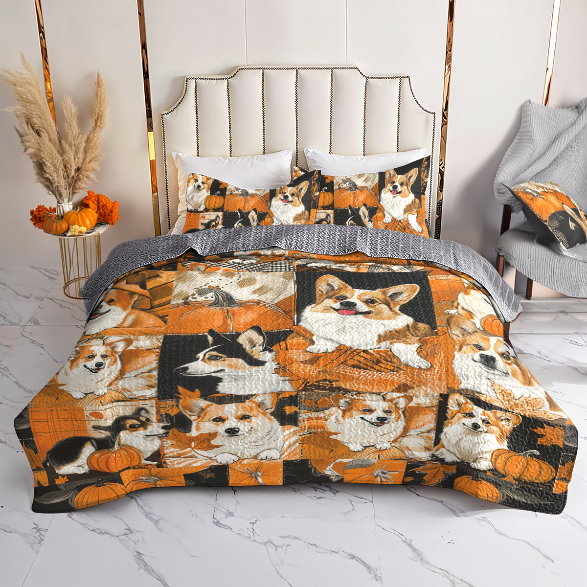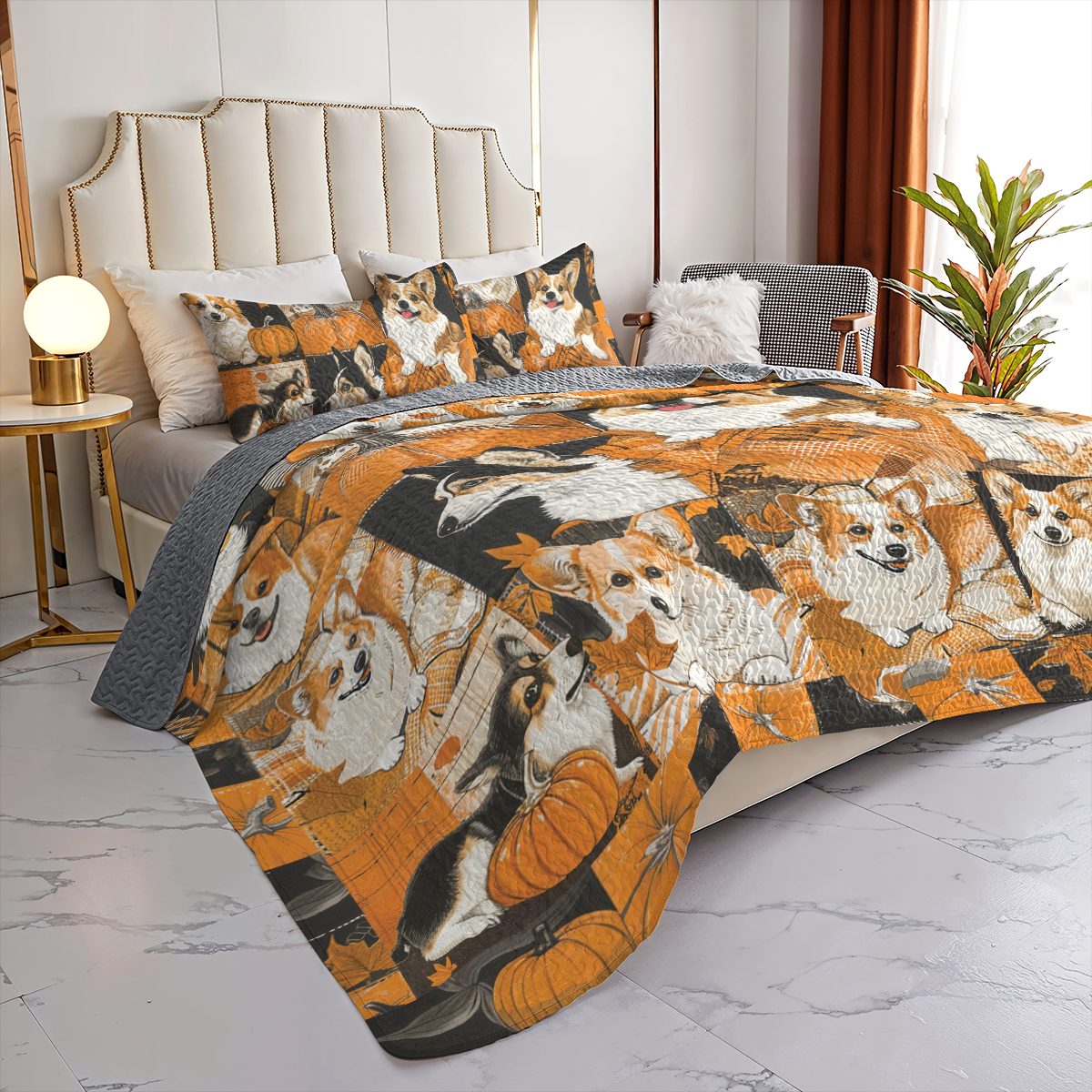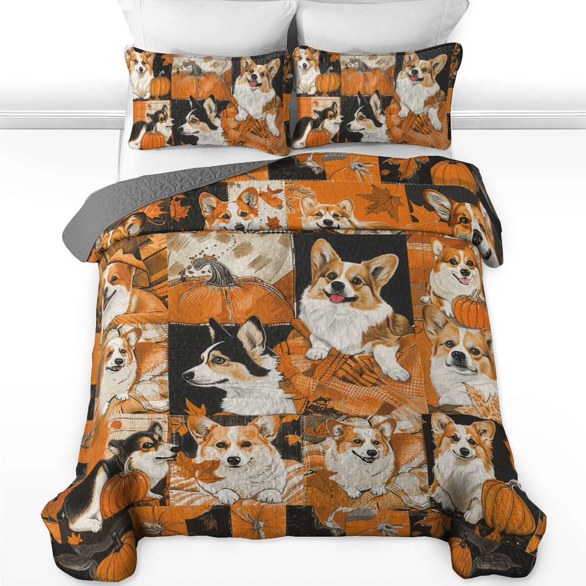 Shineful All Season Quilt 3-Piece Set Fluffy Corgi Autumn