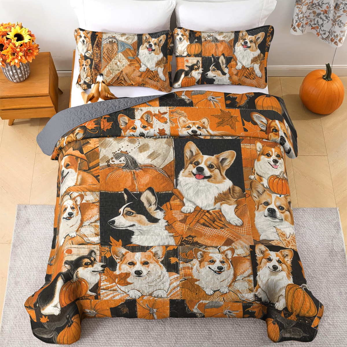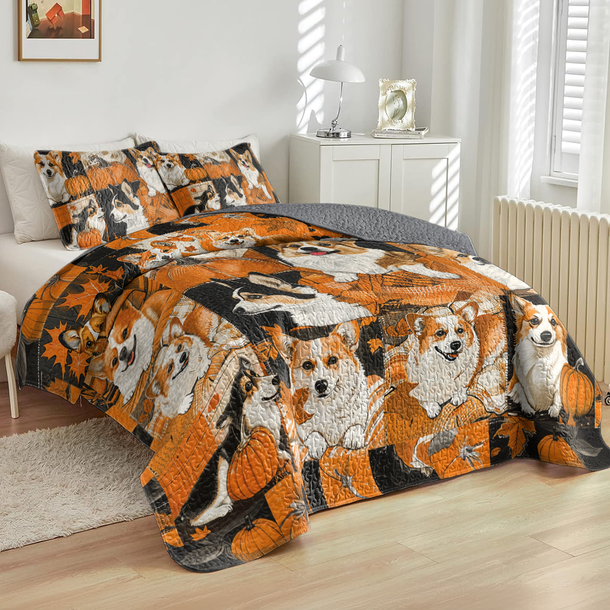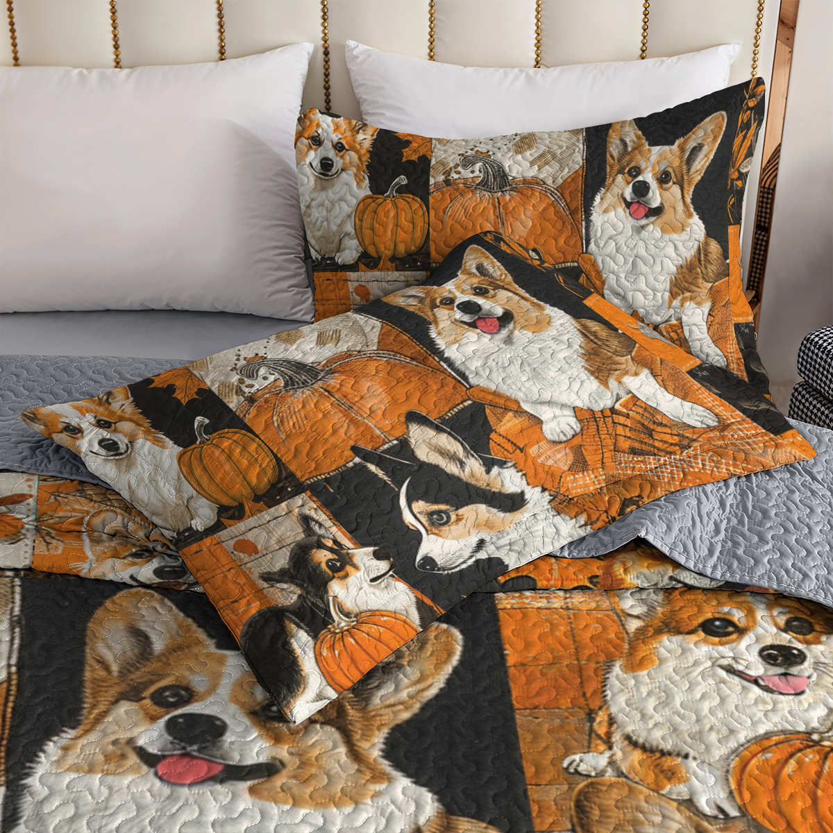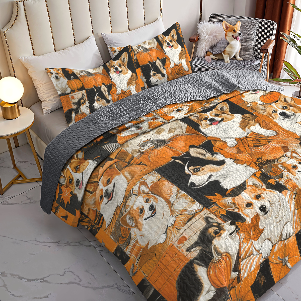 Shineful All Season Quilt 3-Piece Set Fluffy Corgi Autumn