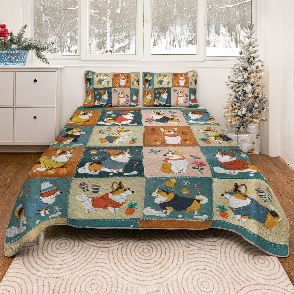 Shineful All Season Quilt 3-Piece Set Four Seasons Corgi Charm