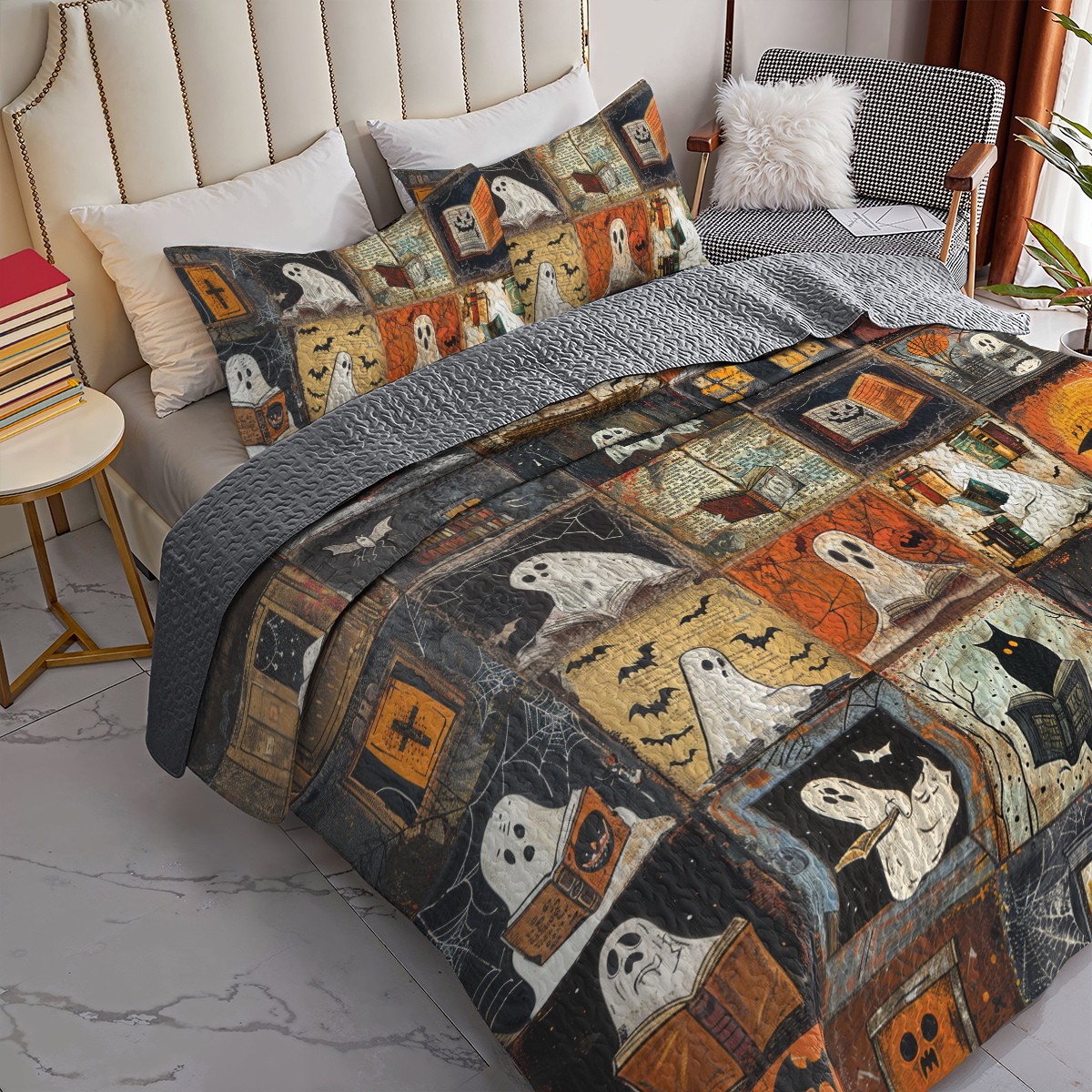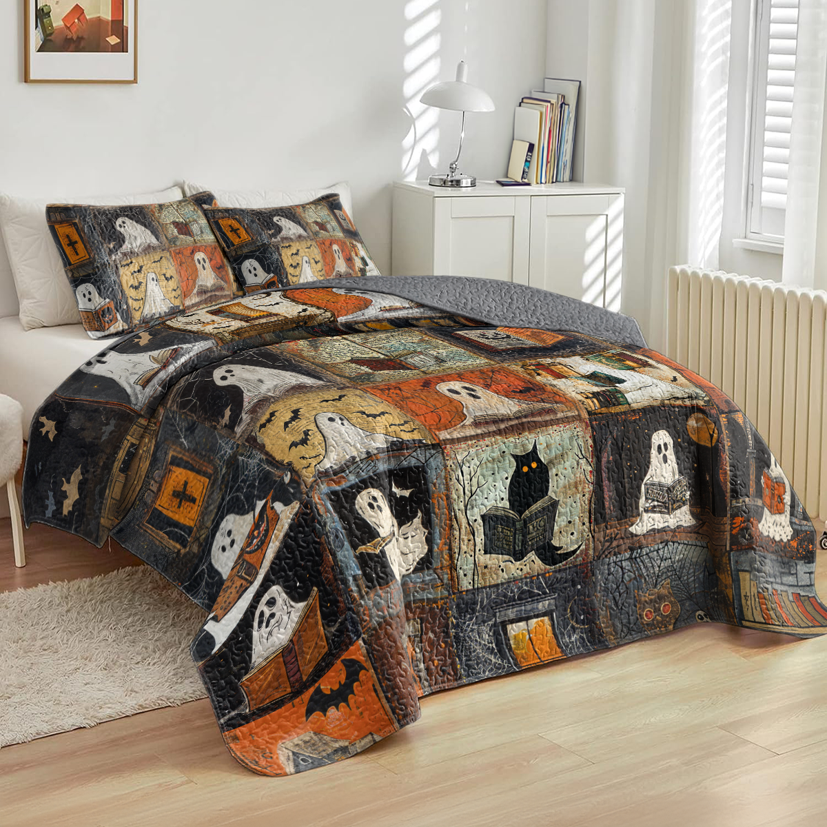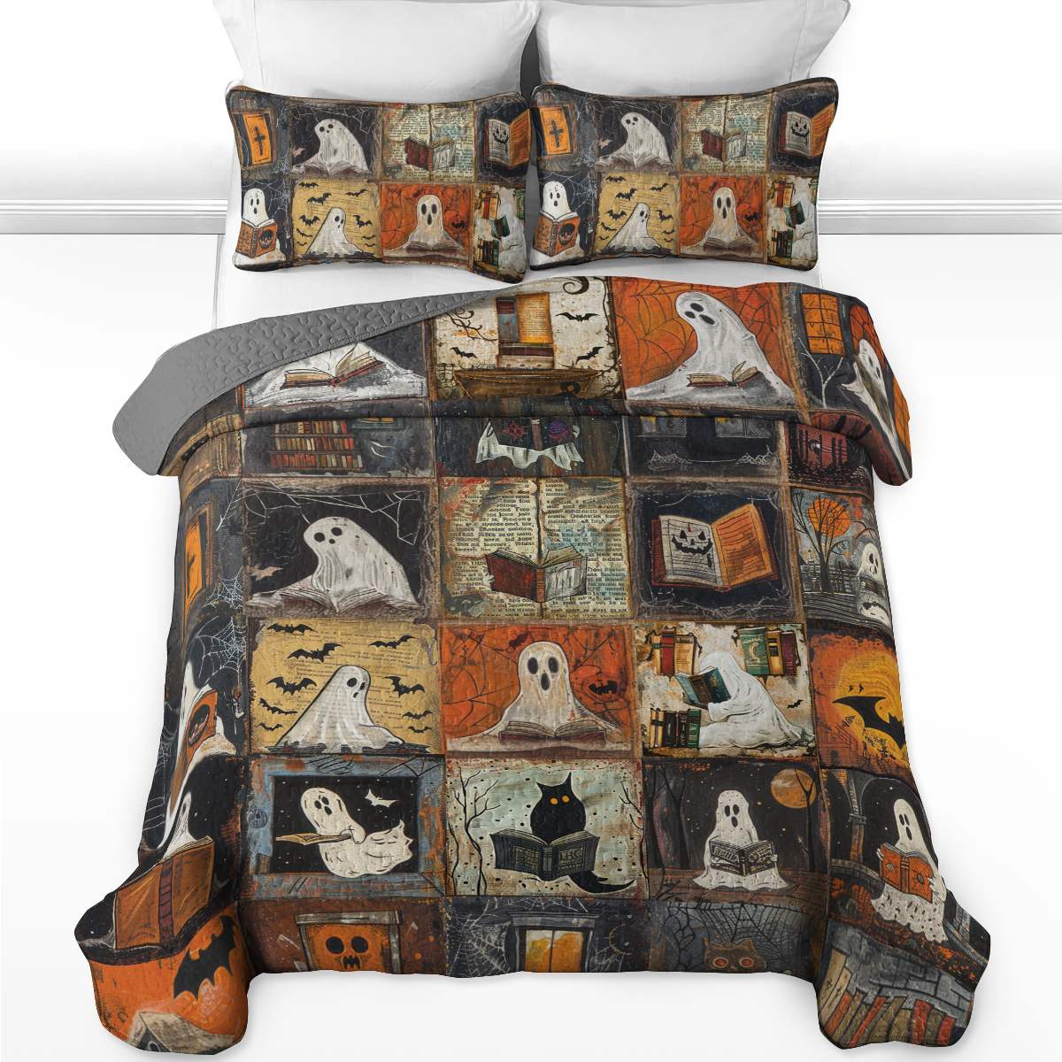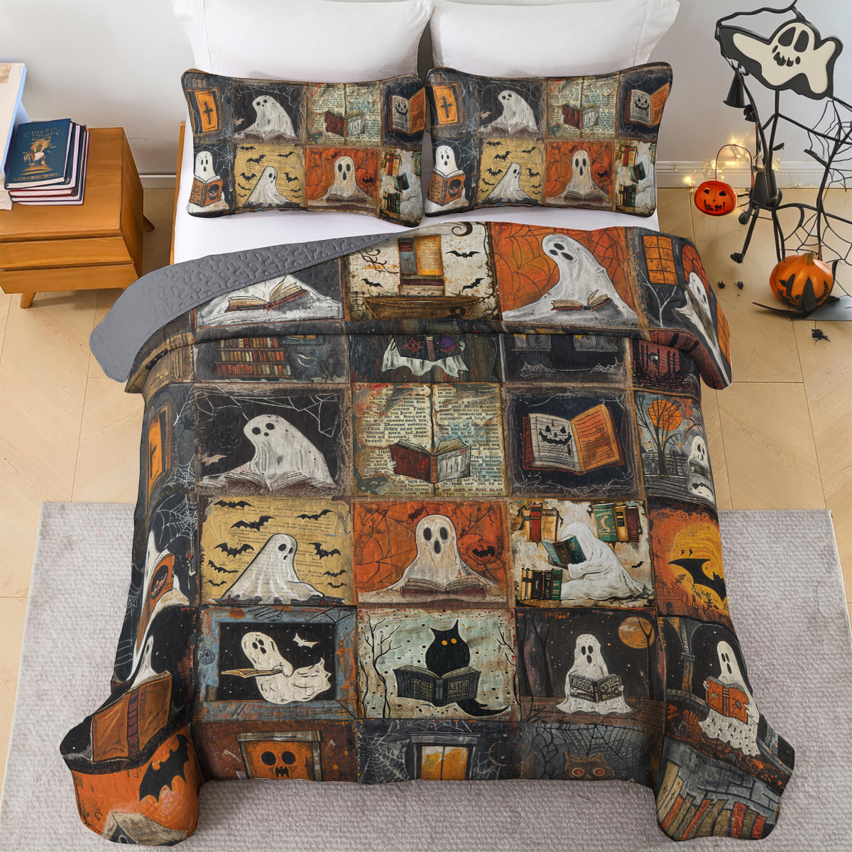 Shineful All Season Quilt 3-Piece Set Ghostly Bookworm