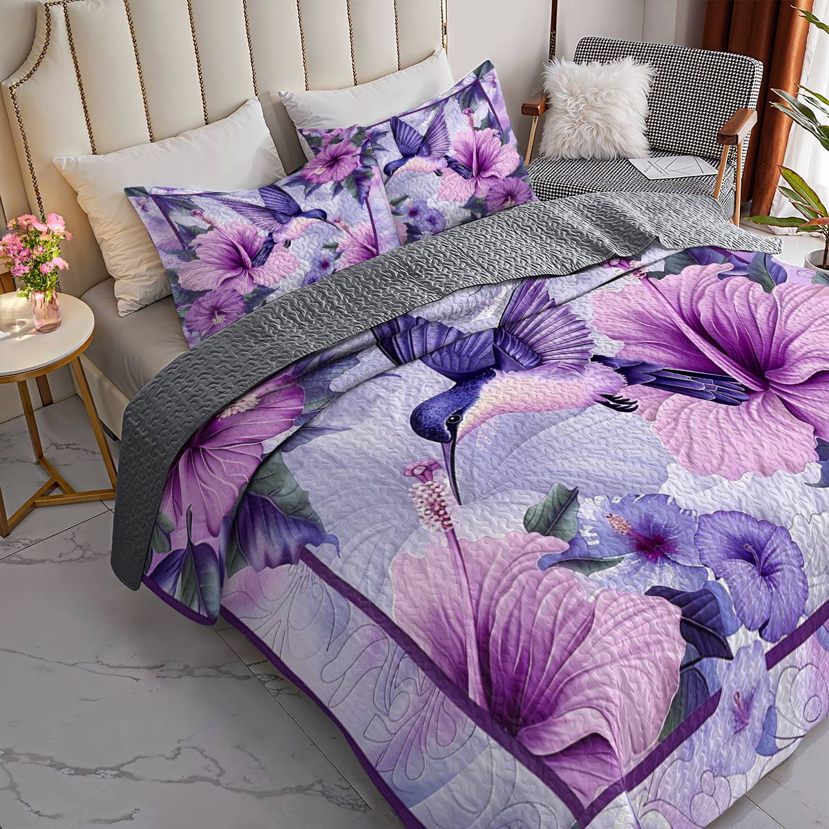 Shineful All Season Quilt 3-Piece Set Gorgeous Hummingbird With Hibicus Flowers