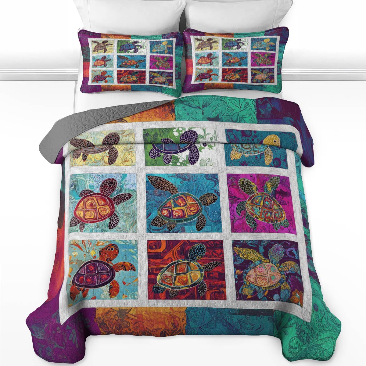 Shineful All Season Quilt 3-Piece Set Gorgeous Sea Turtle Damask Pattern