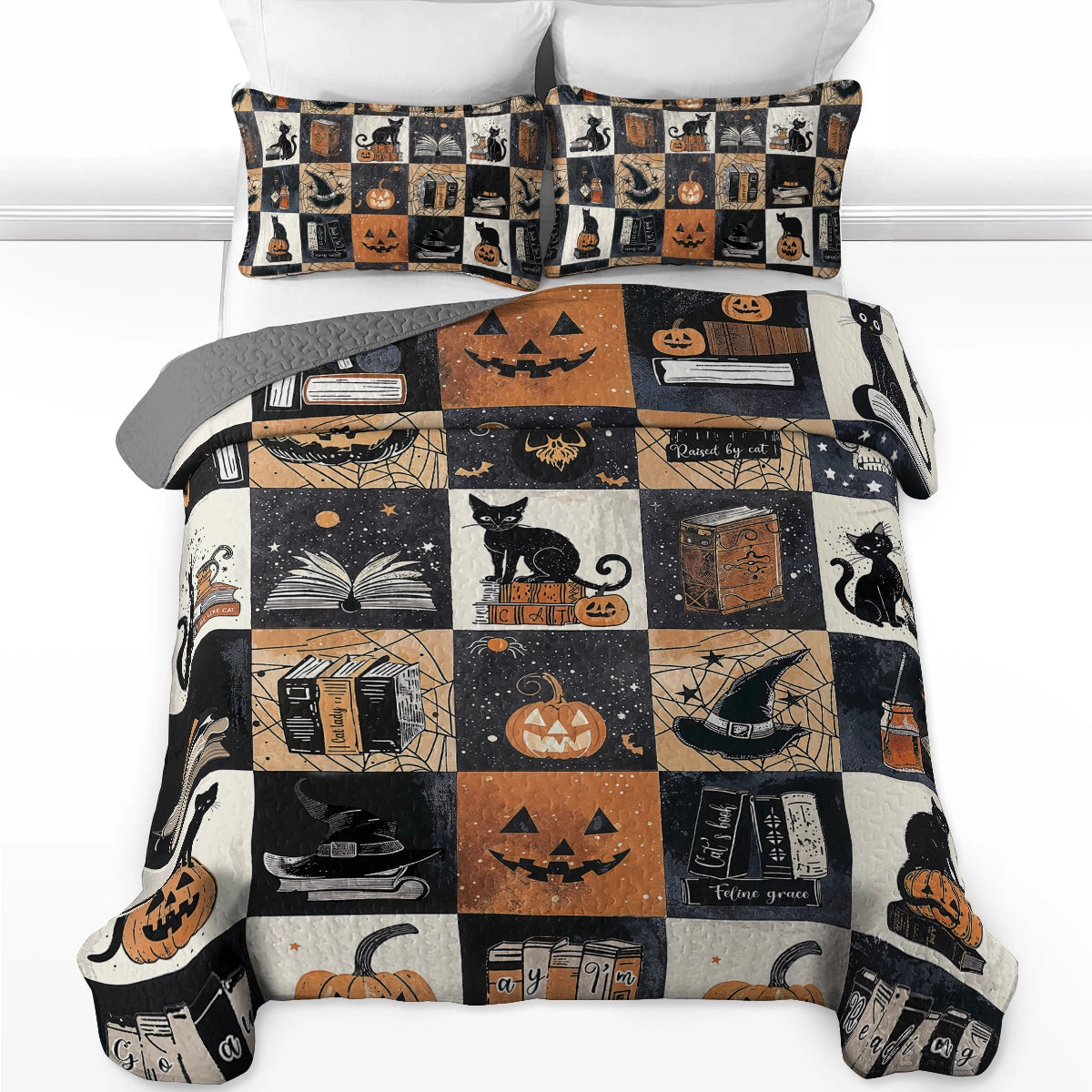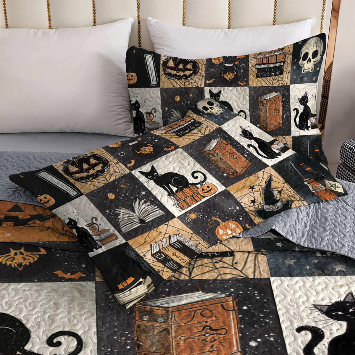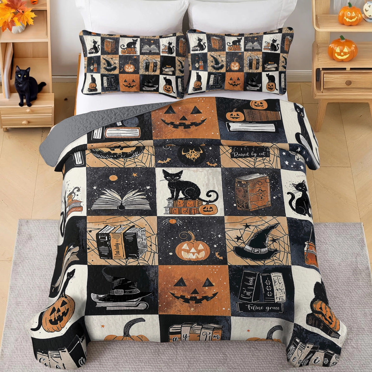 Shineful All Season Quilt 3-Piece Set Halloween Bookish Cat
