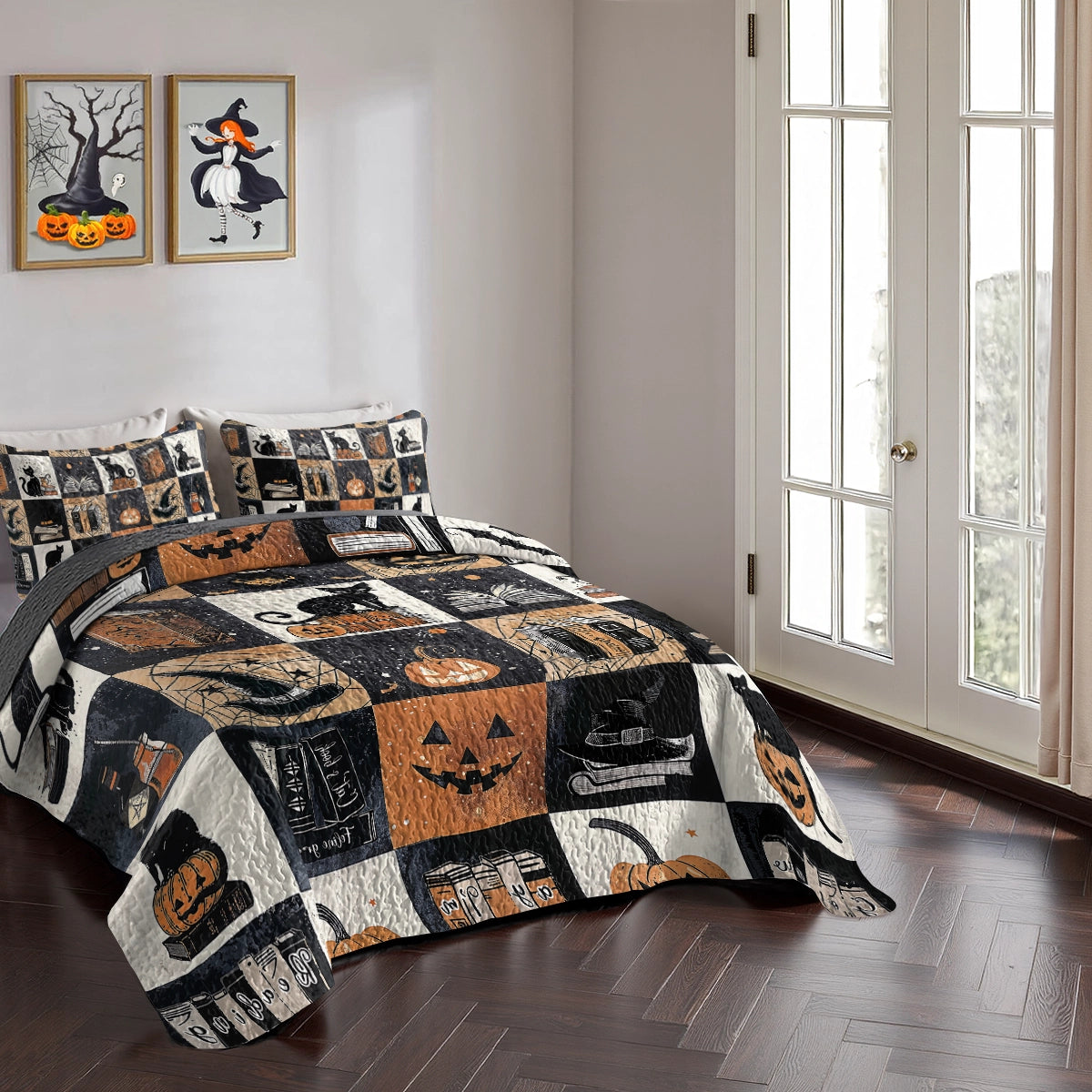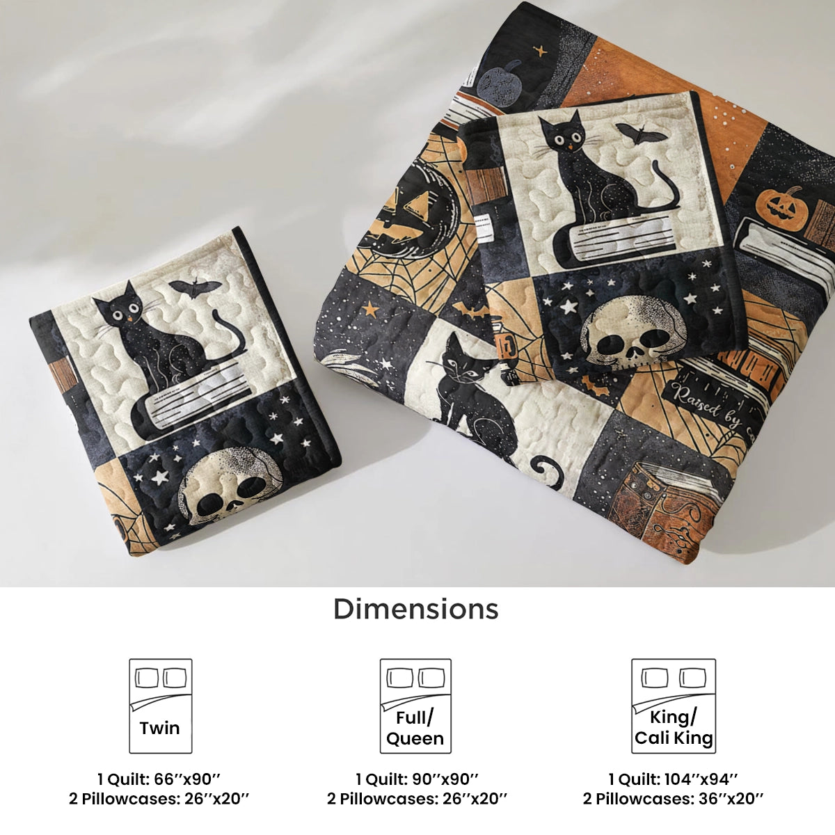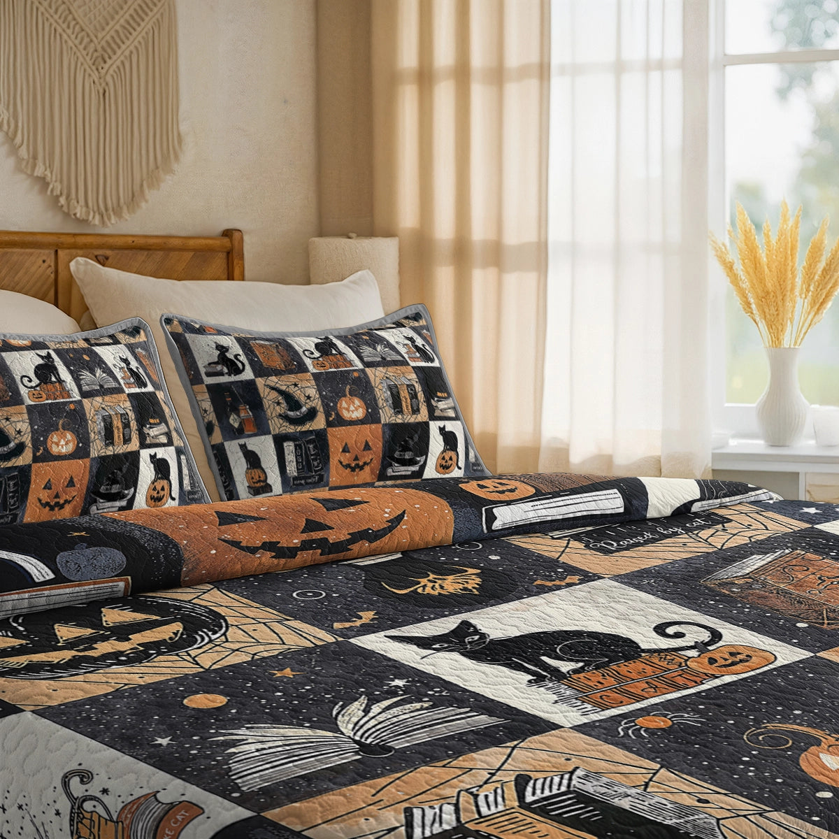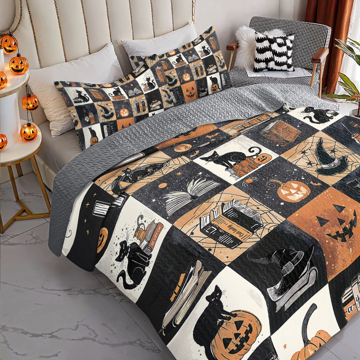 Shineful All Season Quilt 3-Piece Set Halloween Bookish Cat