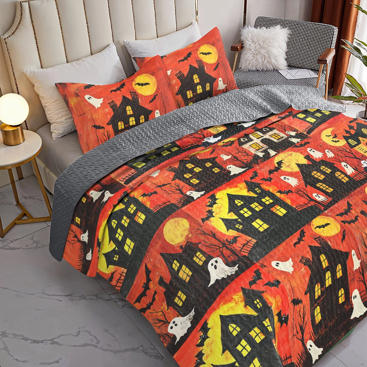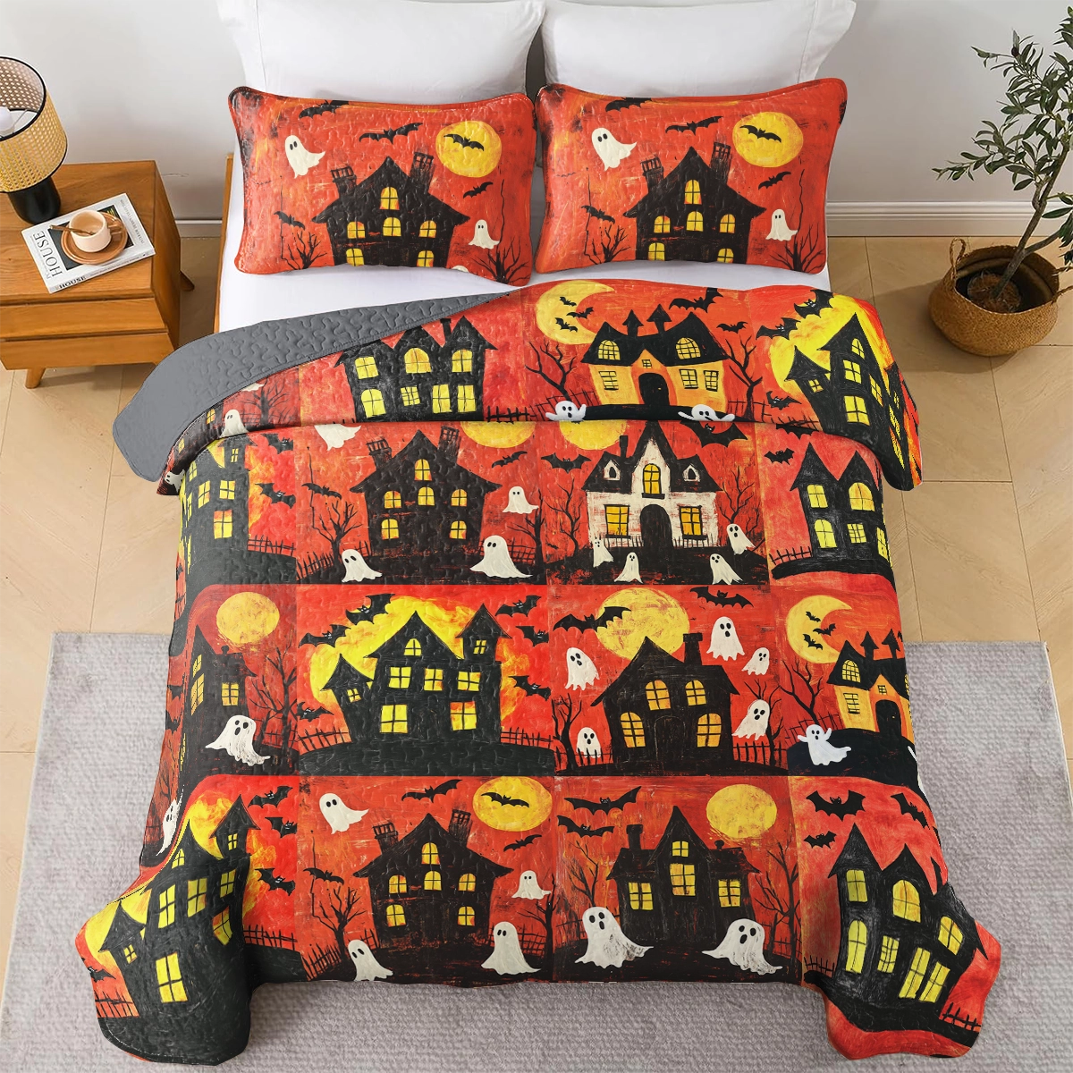 Shineful All Season Quilt 3-Piece Set Halloween Ghost Patchwork