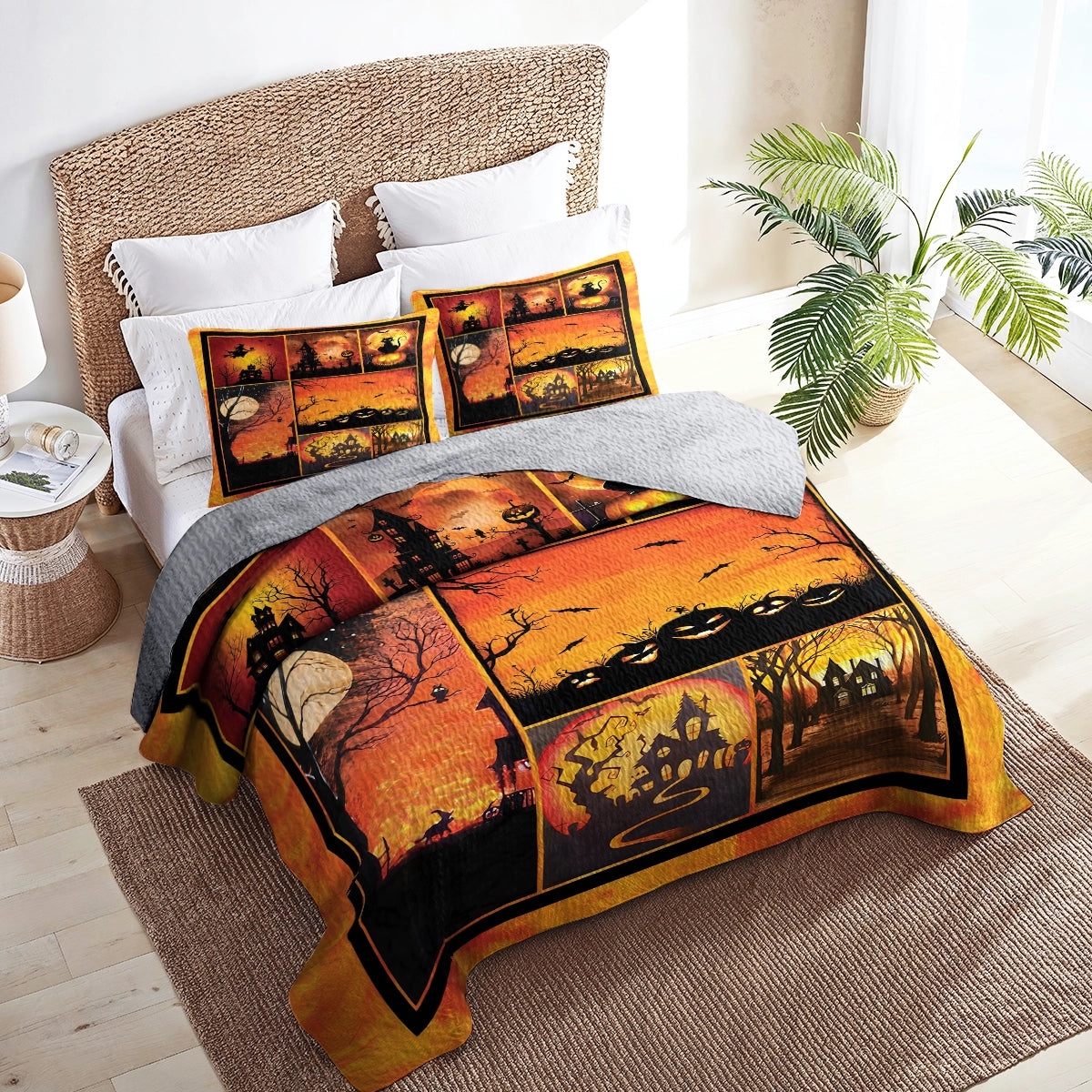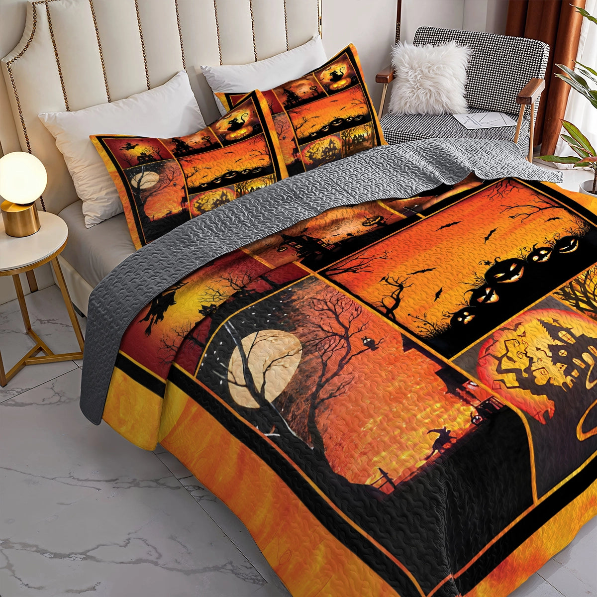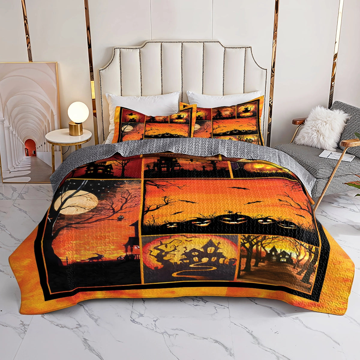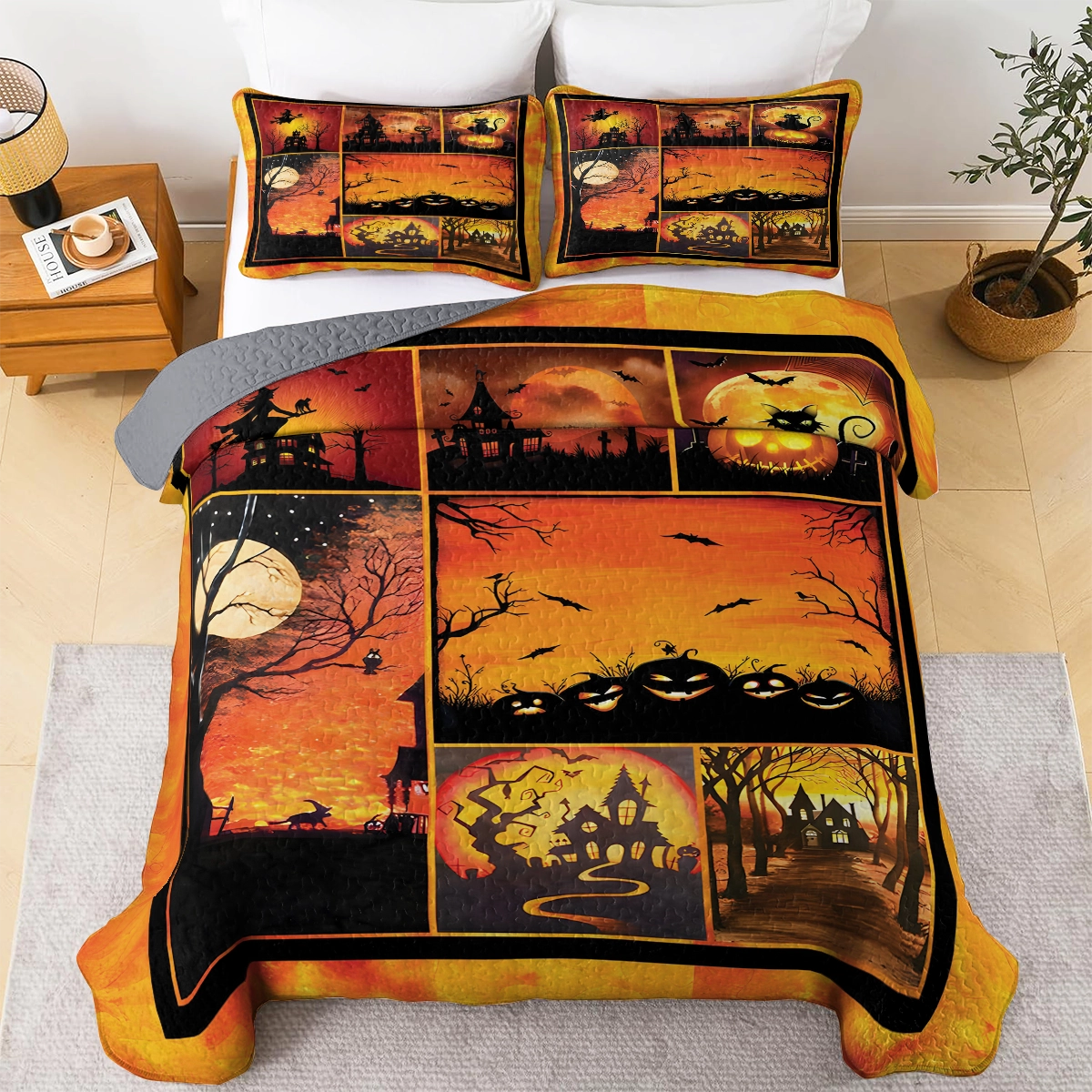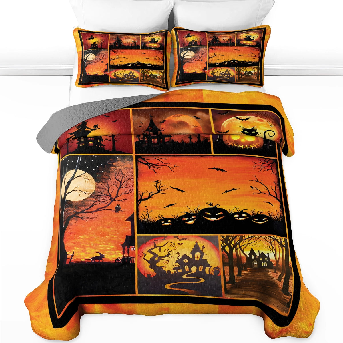 Shineful All Season Quilt 3-Piece Set - Halloween Haunted Pumpkin Night
