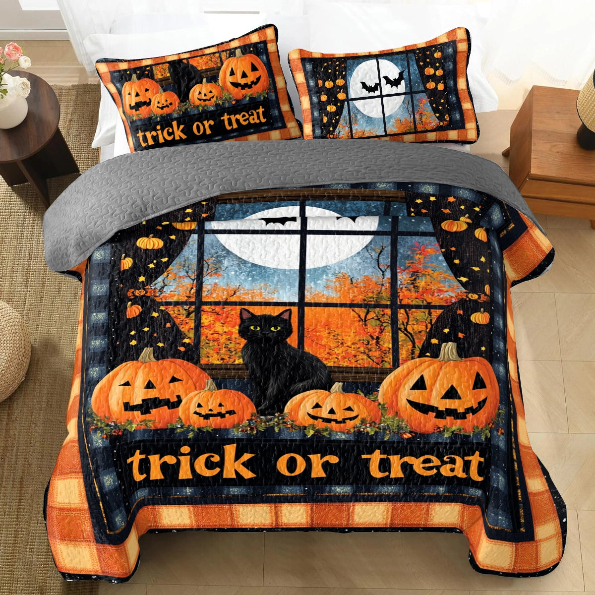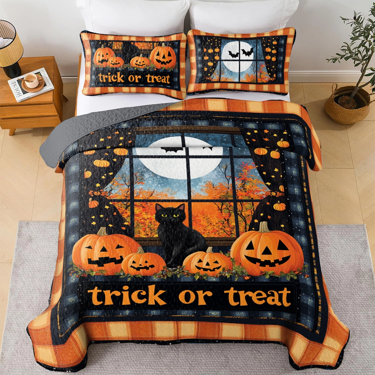 Shineful All Season Quilt 3-Piece Set Halloween Midnight Mischief