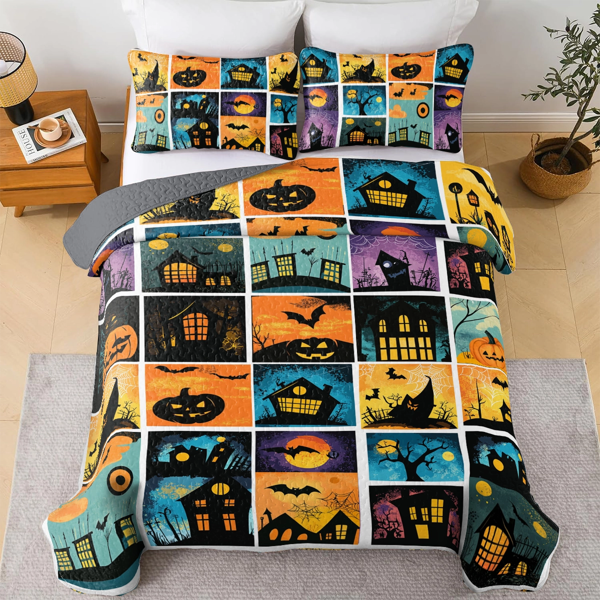 Shineful All Season Quilt 3-Piece Set Halloween Spooky Shadows