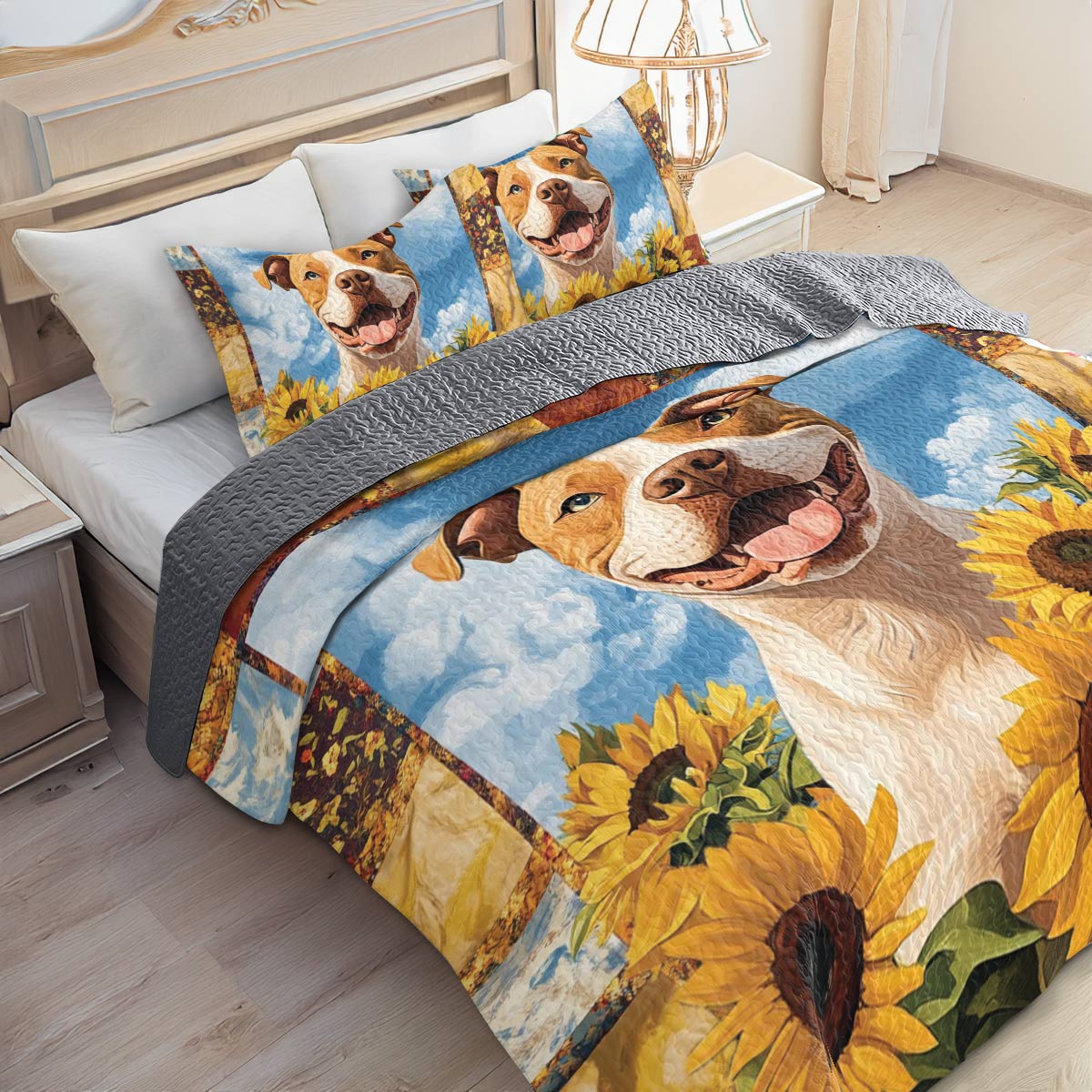 Shineful All Season Quilt 3-Piece Set Happy Bulldog
