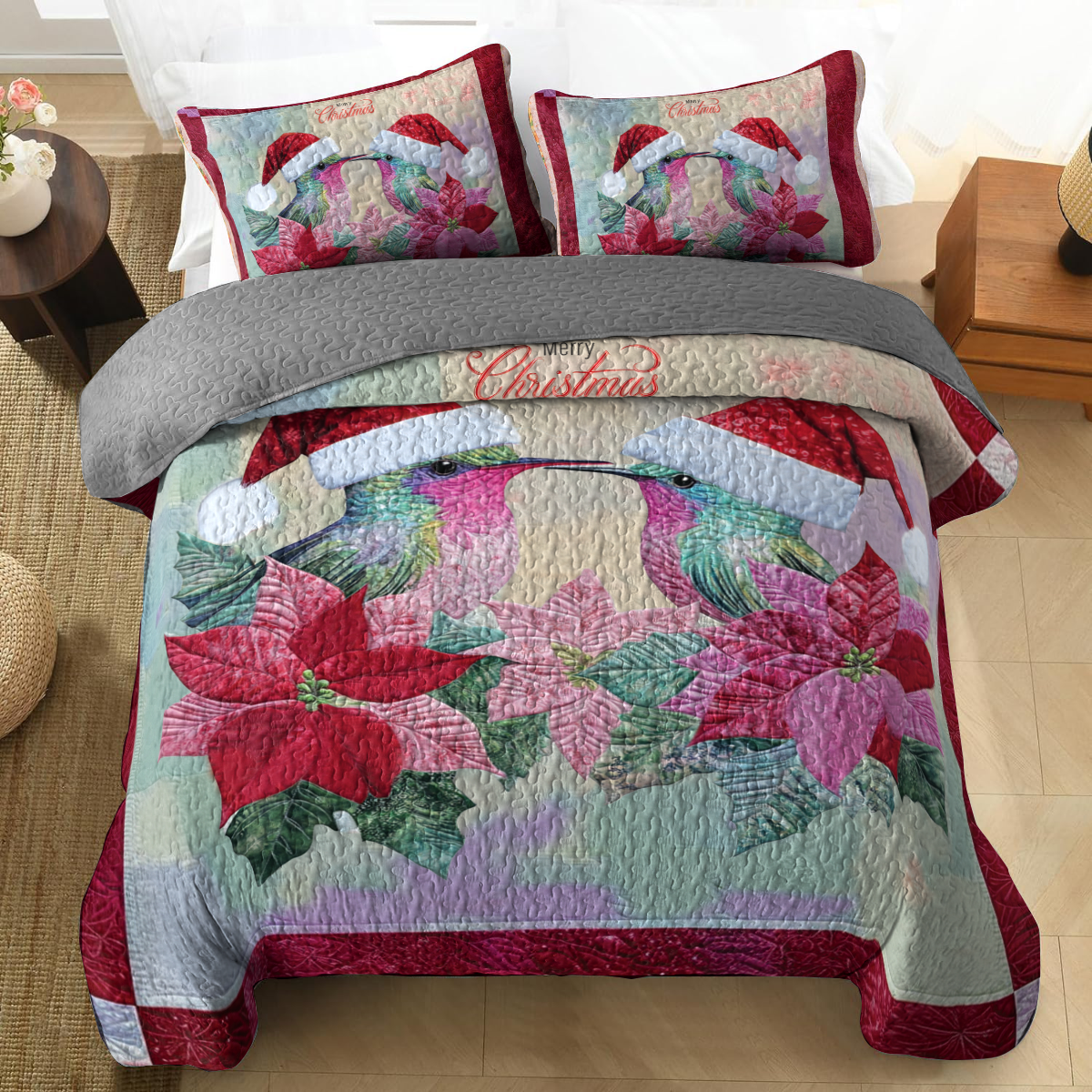 Shineful All Season Quilt 3-Piece Set - Holiday Hummingbird Lovebirds