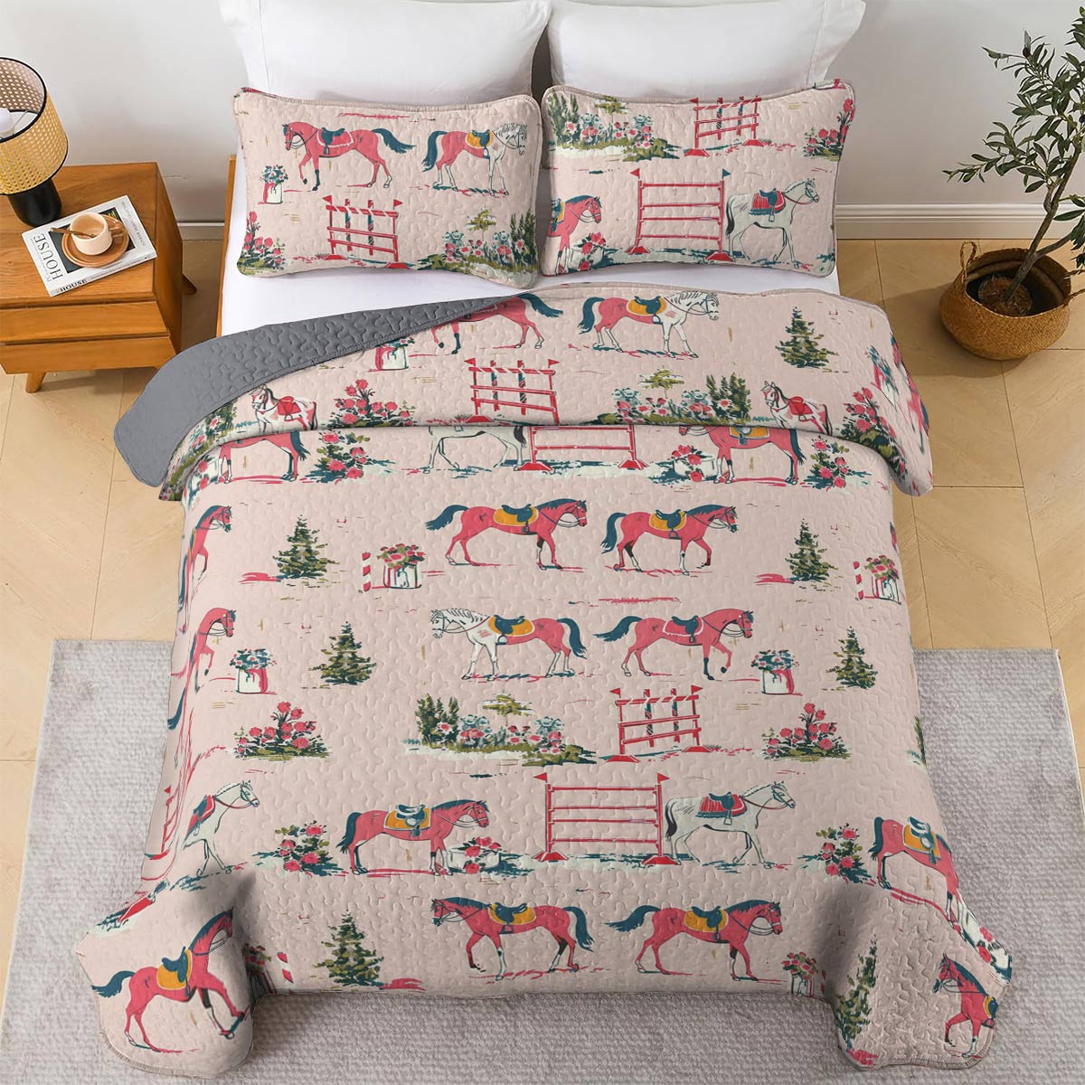 Shineful All Season Quilt 3-Piece Set Horse Racing Ver2
